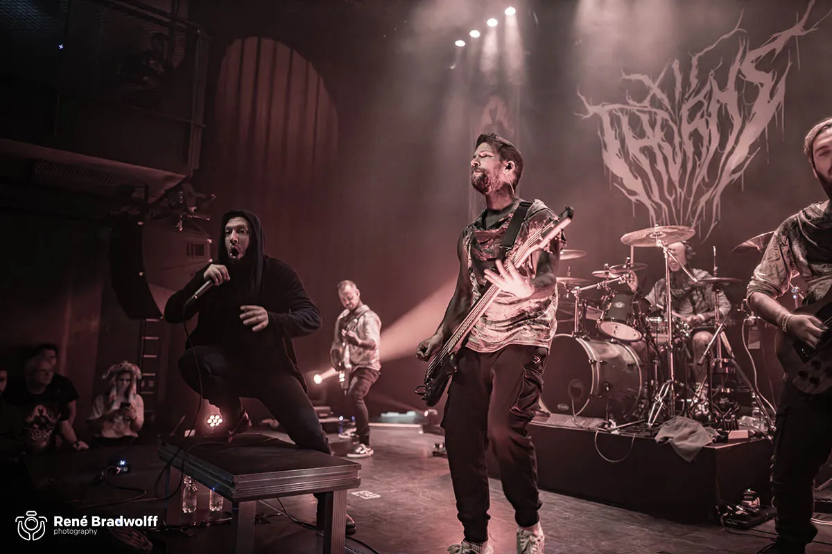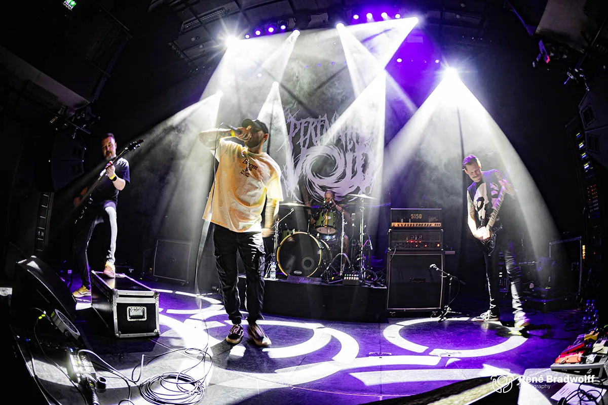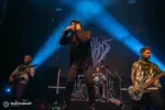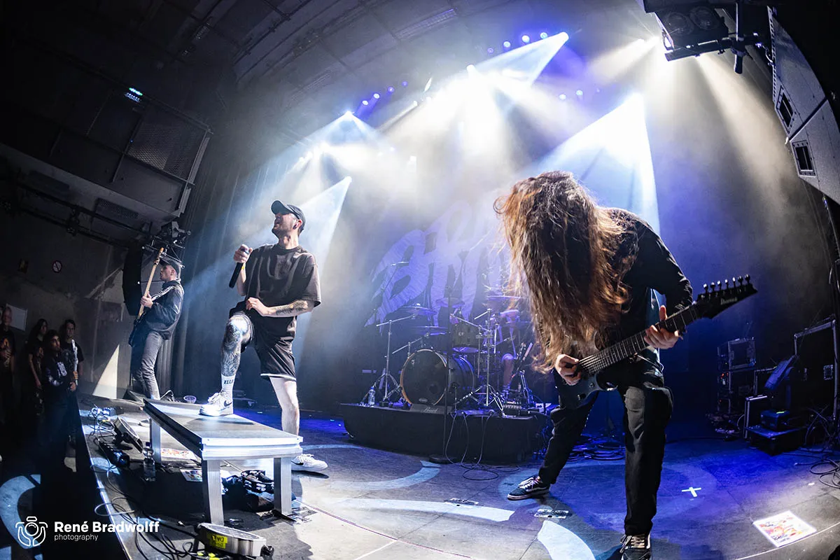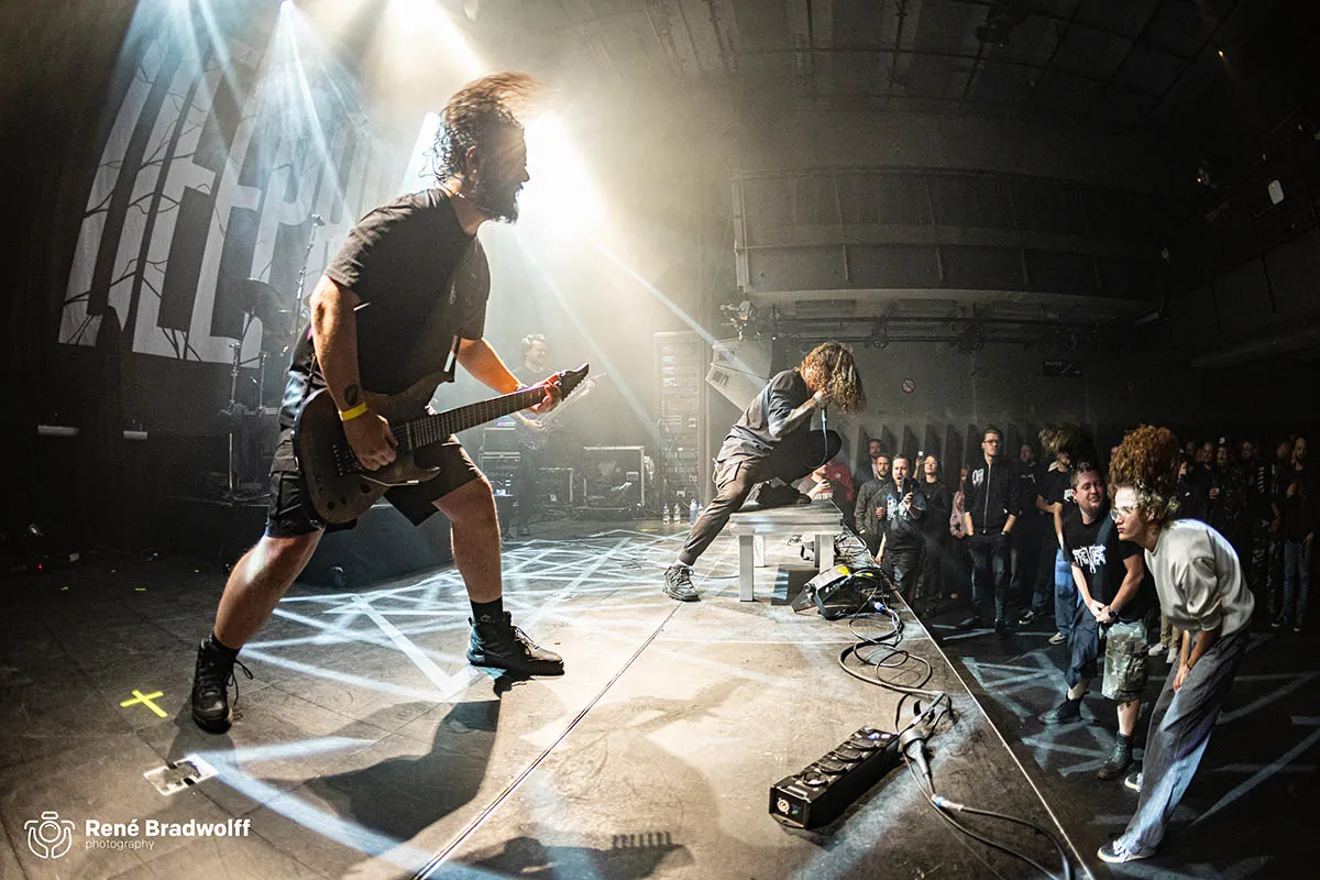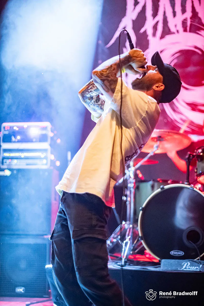 Als het licht dooft en de eerste tonen van een sacraal intro klinken, betreedt XII Thorns het podium in zwartgeblakerde shirts. Wat volgt is geen gewone set, maar een zorgvuldig opgebouwd ritueel dat het verhaal van hun nieuwe EP Duyvelsziele tot leven brengt. De band opent met het titelnummer: log, dreigend en vol theatrale lading. De sfeer is haast religieus, maar dan van het duistere soort. Daarna barst ‘Edax Animae’ van hun eerdere EP Wreath los. Bruut en snel met gitaren die subtiel ritme verweven tussen de lompe breakdowns. De combinatie van brute kracht en fijnzinnig detail maakt duidelijk dat XII Thorns geen standaard deathcoreband is.