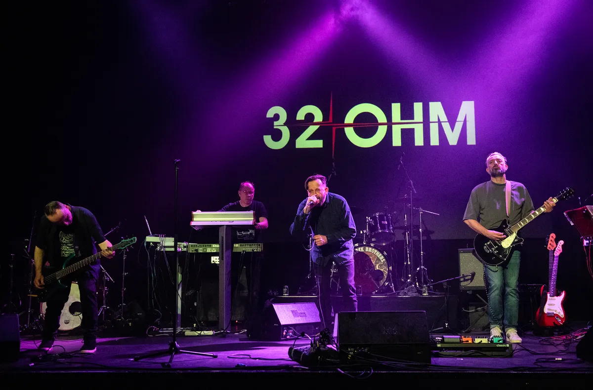 Direct bij binnenkomst springen twee prachtig gestylede punk-hanenkammen in het oog (al komt een associatie met bussen haarlak, drijfgas en het gat in de ozonlaag ook even bovendrijven). De sfeer is lekker relaxed en vanavond mag 32 Ohm het spits afbijten. Het vijftal, afkomstig uit de Euregio, brengt een heel aangename en gevarieerde combi van synth-pop, new-wave, pop en rock. Denk aan Iggy Pop meets D.A.F. Ook Duitse en Engelse songteksten wisselen elkaar in Volt ogenschijnlijk moeiteloos af, gecombineerd met strakke drums met een stuwende bas, herkenbare synths en pakkende riffs. De vocals zijn gepassioneerd en meeslepend en soms ook met een melancholische dikke knipoog naar vroegere tijden. Even terug naar het gevoel van toen, met één voet in het heden. Je voelt je een beetje vervreemd, alsof je een niet-speelbaar onzichtbaar personage bent in het spel van iemand anders, een figurant, die wordt omzeild door de autoriteiten. De muziek laat je weten dat je niet de enige bent. Ga eens off the grid en geniet van een oceaan van rust. Hun meest recente release Figurants bevat zes nieuwe nummers, met thema's zoals vervreemding en escapisme en de EP slaat tevens een brug naar, jawel, fit blijven! Januari is traditiegetrouw de maand van de goede voornemens en die brengt 32 Ohm eveneens in eighties-stijl met 'Popgymnastik'. Haal je videorecorder maar onder het stof vandaan en je legging, pols- en haarbanden maar uit de kast en aerobic mee!