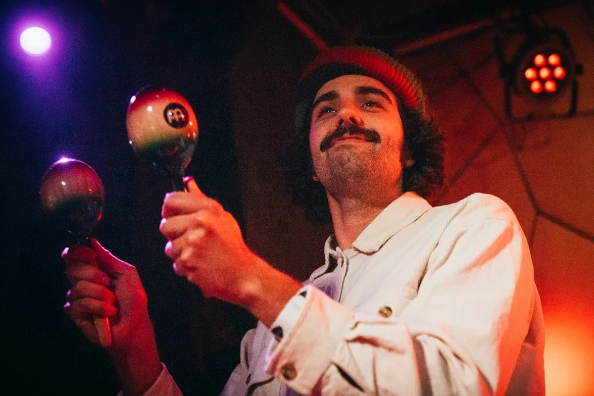 Mocht je niet willen dat er op je tenen wordt gestaan, dan is het nu hoog tijd om het optreden vanuit een hoger perspectief te bekijken. Het is te zien dat deze band heel gepassioneerd is in de muziek die ze maken en ook in de manier hoe ze dit overbrengen. Elk bandlid is een tikkende tijdbom aan energie en het kan dus ook niet anders dat de menigte hier volkomen in op gaat wanneer die bom elk nummer weer opnieuw ontploft. Ludieke gezichtsuitdrukkingen, dansend of gewoon met een grote lach slaan op de claves of grinnikend schudden met de sambaballen. Elk moment van het optreden van Iguana Death Cult voelt aan alsof je drie blikjes RedBull op hebt en Cul de Sac is vanavond the place to be om al die energie eruit te gooien en te vliegen over de handjes van het publiek.