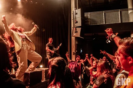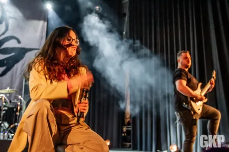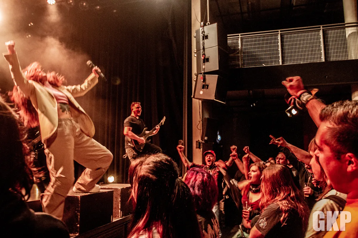 Want boven alles komt het vijftal natuurlijk hun nieuwe plaat ‘Crown’ voorstellen. De nummers van deze nieuwe schijf zijn haast swingend te noemen. Met momenten iets meer metalcore en minder death. Maar zeker niet minder hard of minder technisch. De hele show is strak, enthousiast en oprecht. Alizadeh is misschien klein van stuk, maar ze is groot van stem. Ze grunt en brult haar longen uit het lijf, rent danst en vliegt onophoudelijk het podium op en af en blijft maar gaan. Steeds maar Complimenten uitdelend over hoe tof ze het hier vindt en hoe trots ze is (en terecht) op ‘Crown’. Ondersteund door ‘haar’ heren. Die haar geen seconde uit het oog verliezen. Bij elke move is er even contact bij elke break gaan gezamenlijk de hoofden heen en weer. De band heeft de heren in stemmig zwart en de dame in creme wit gekleed zodat de aandacht nog meer naar haar uitgaat dan voorheen. Single ‘Liars’ is een wereldsong en ook ‘Trojans’ is een heerlijke moderne metalsong. Het grooved en beukt tegelijk. ‘Crown’ is de derde plaat van deze Noord-Hollanders en het bekrachtigt het tienjarig bestaan van de act. De vorige plaat ‘I’ resulteerde in een karrevracht aan shows en festivaloptredens Deze plaat gaat dat ook bewerkstelligen. Want al is dit kleinoot in eigen beheer uitgebracht. Als muziek goed is, vindt het zijn weg wel. En de muziek is goed, net zoals de show en eigenlijk de hele avond. Wie nog vol metalgloed naar buiten loopt valt direct in de polonaise. Een anticlimax. Maar iedereen z’n feestje natuurlijk.