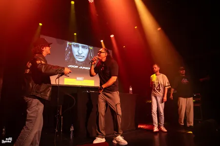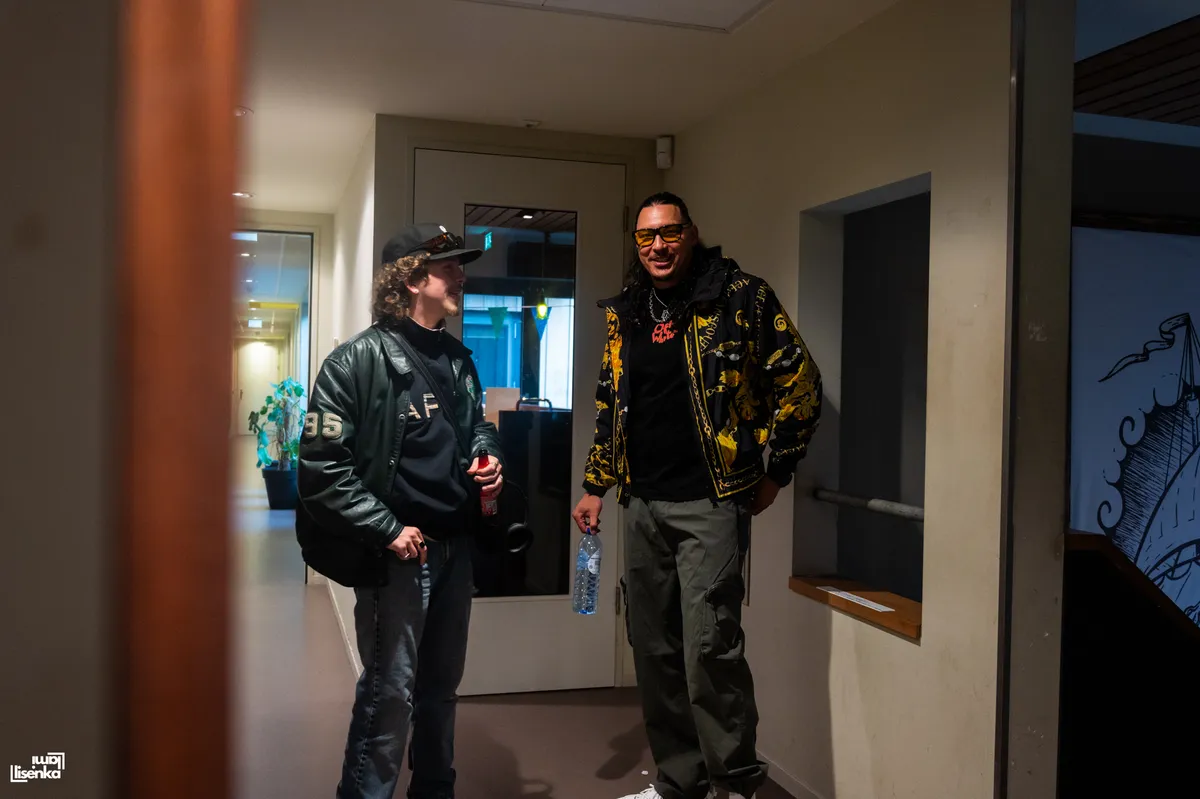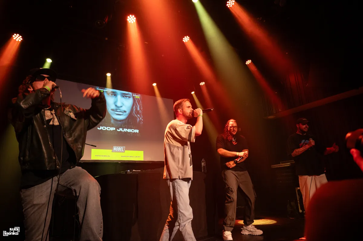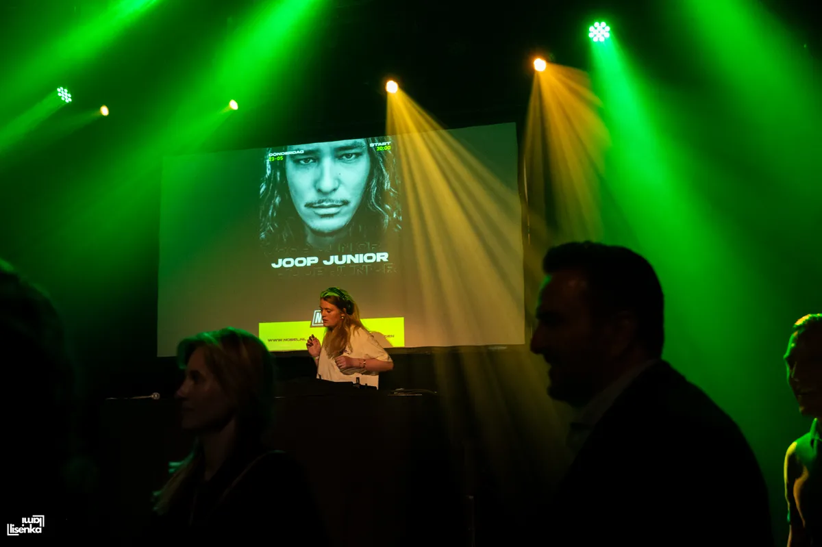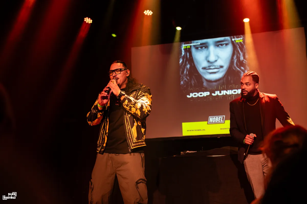 Door het labyrint van de backstage van de Nobel komen we aan bij Joop Junior, aka JJ Pelmelay, die ons heel vriendelijk ontvangt en in de watten legt. Een grote vriendelijke reus, dat is Joop. Zijn diepe stem klinkt al prettig als hij praat. Joop is dan ook een opkomend talent die al langer aan de weg timmert. Als dj, dj docent, danser, producer en nu kan hij ook rap aan zijn repertoire toevoegen.