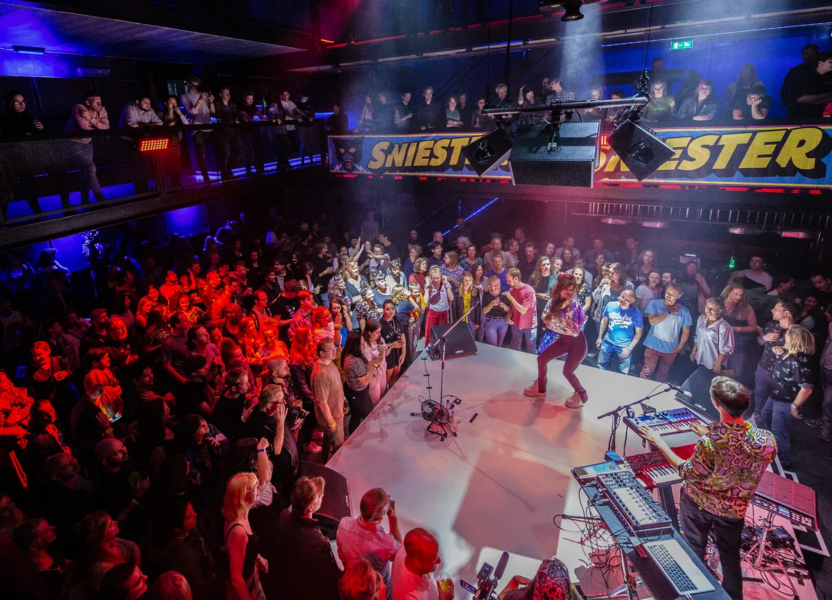 “Ik zit hier eigenlijk nooit”, zegt Marco Bijsterbosch. We zitten op het balkon van De Zwarte Ruiter, dat uitkijkt op het podium. “Wat doet die blauwe lamp daar? Die heb ik nog nooit gezien.” De programmeur van de Grote Markt kijkt zijn ogen uit in de ruimte waar hij wekelijks bands laat spelen. We zijn hier, op een maandagmiddag, om het te hebben over alweer de tiende editie van Sniester die er binnenkort aankomt.