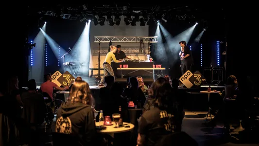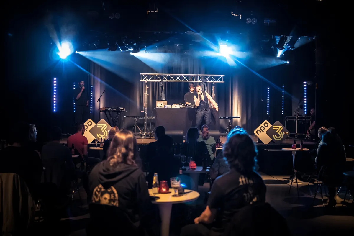 Het is half acht stipt. NPO3FM presentator Luc Sarneel, afkomstig uit Middelburg, is de host van vanavond en staat in contact met de studio in Hilversum. Of de sfeer er al inzit? Het publiek mag plaatsnemen aan tafeltjes met stoeltjes, omringd door camera’s die de avond vastleggen voor de livestream. Financieel rendabel is het verre van, maar de medewerkers van De Spot keken uit om deze productie te mogen draaien.