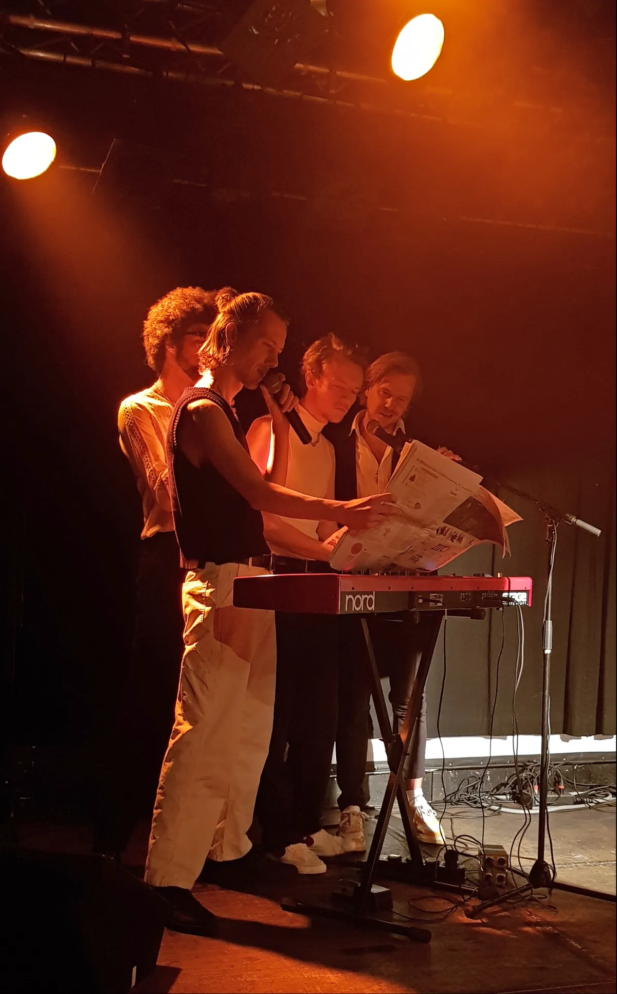 De band start bijzonder geestig. Wanneer alle vijf leden het podium op zijn geklauterd, begint Wout Waanders. Hij vermeldt dat vanaf dit moment hun debuutalbum online staat en dat de fans in de zaal de eersten zijn die dat nu weten. Wout vraagt ook of de fans hun Spotify willen openen om het album op het allerlaagste volume af te spelen. ‘’Per stream krijgen wij namelijk drie cent’’, zegt hij met een grote grijns op zijn gezicht.