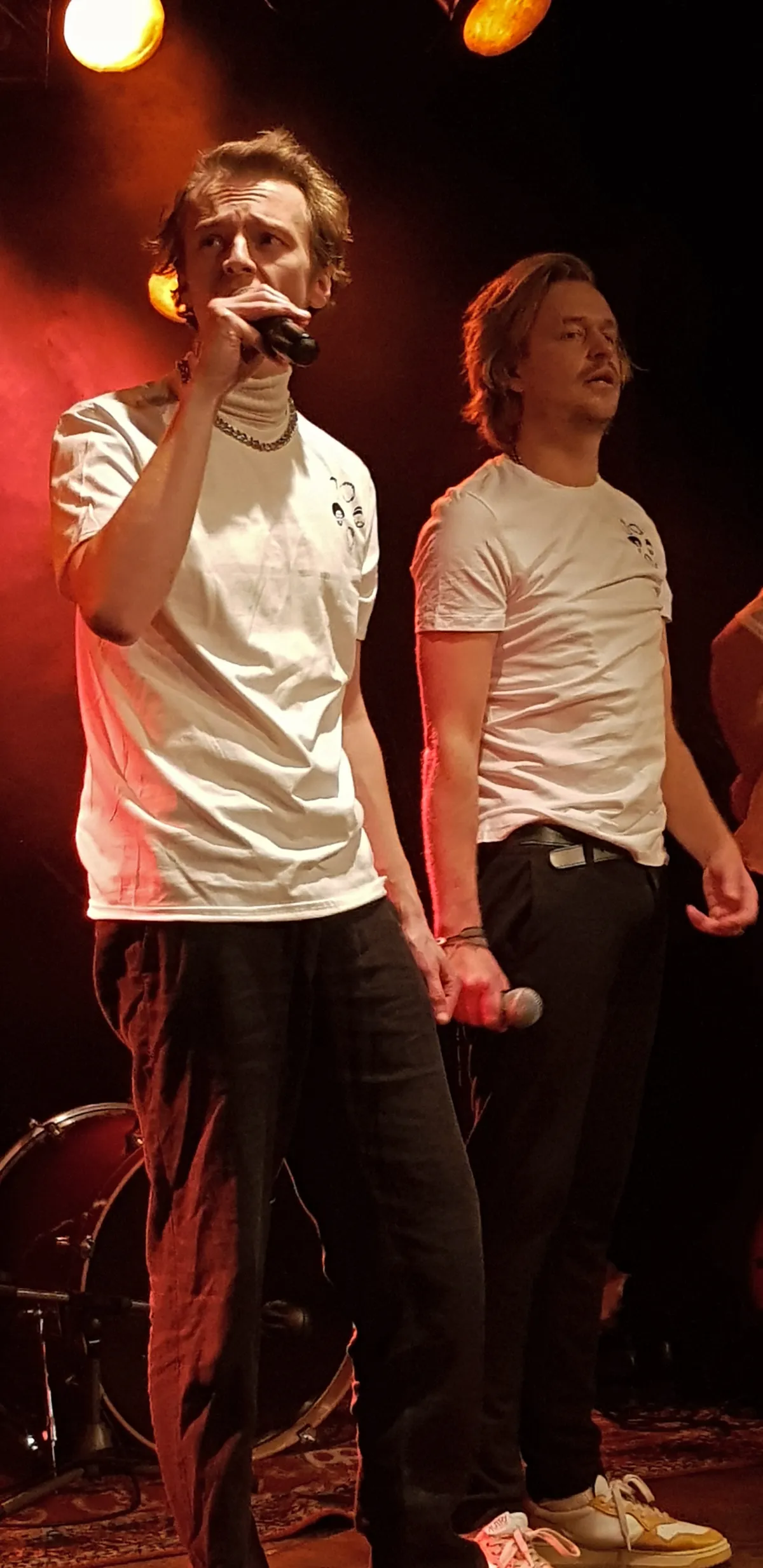Een ander verrassend moment op de avond is wanneer de bandleden plotseling stoppen met spelen en ze alle vijf hun shirt verwisselen. Het publiek reageert gecharmeerd. Alle heren dragen nu een wit T-shirt met de vijf hoofdjes van de formatie erop geïllustreerd. De shirts blijven aan tot het einde van het optreden. ‘’Jullie vragen je misschien af: hoeveel kosten deze shirts?’’ grapt Martin nog.