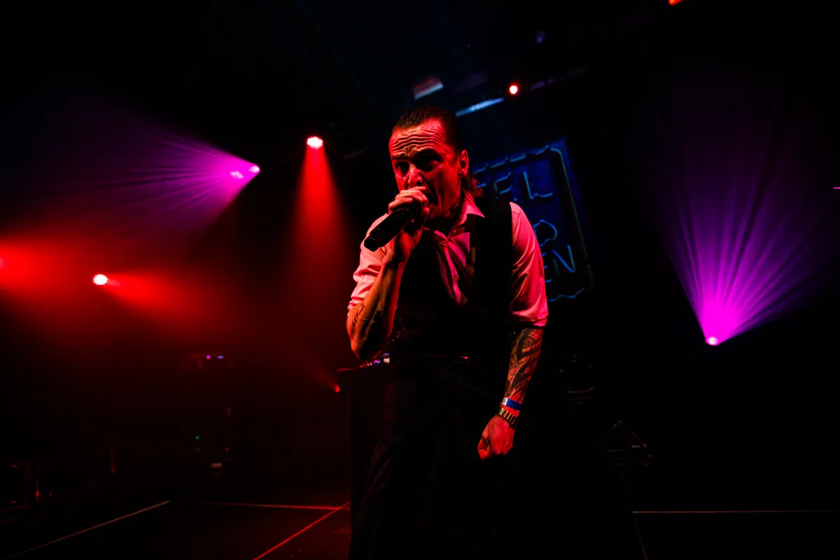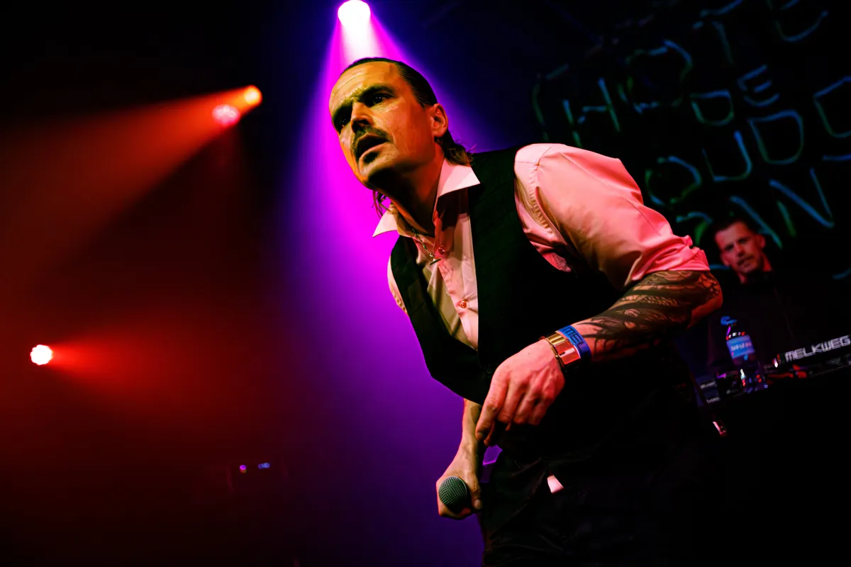 Het is nog wat rustig in de Melkweg als Jordy Dijkshoorn stipt om 21.00 zijn show begint. ,,Het is tijd, we beginnen gewoon.” Het is een tijdje geleden dat Dijkshoorn op het podium heeft gestaan, sinds het begin van deze nieuwe tournee, behorend bij het album Hotel De Goudfazanten dat vorig jaar al is uitgekomen. Een eerste echte eigen Jordy-track met Als De Nacht Valt. Zacht, sluw en scherp wordt er een overtuigend monoloog gerapt over dingen die alleen maar in het donker gebeuren: “want dan groeien mensen op.” Gevolgd door grove bevingen op diepe gitaarriffs, van niemand minder dan DJ Roy George, die de hele tour aftikt met deze woeste woordenkunstenaar.