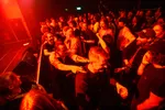 Een synthesizerbeat met druppende tikken luidt Bloed Aan De Muur in terwijl Jordy’s voeten op ooghoogte zitten. Als de volwassen kleuter weer het toneel op is gedoken, wordt het toch wel weer saaitjes. ,,Een kleine moshpiterino, dames en heren.” En binnen een split van een seconde is er een rondje in de zaal. ,,Dat kan groter, DAT KAN GROTER! Het is tenslotte donderdagavond en ik ben botergeil.” In ultieme spanning wordt er door het publiek gewacht op de finale eindknop die de show in het laatste standje turbo zet. Heupjes zijn losgeswinged en met een show die om precies 21.00 is begonnen, kan het publiek nog net op tijd zijn kinderen in bed leggen. Stoute studentenherinneringen zijn op z’n Rotterdams losgesjeesd.