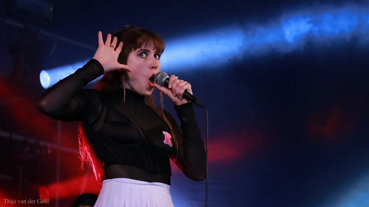 Pillen, strelingen, gecoördineerde dansjes: Kuzko maakt van de Tent een theater met hun fantasierijke vertoning van een geil Amerikaans koppeltje. De baseballjacks en cheerleaderrokjes dragen bij aan de act, de toneelstukjes maken hem af. Ze worden veel met Confidence Man vergeleken, wat gezien de nasale Amerikaanse ‘Cali girl’ praatzang en ultradansbare beats niet zo gek is. Toch is Kuzko een unieke toffe band van eigen bodem en eentje die op het punt staat om keihard door te breken. Waar na de eerste twee nummers de vraagtekens nog boven het publiek hingen is iedereen aan het eind van de set helemaal mee. 3FM-hit ‘Penelope’ ofwel “pe-pe-pe-pe-nelope!” slaat lekker aan, net als een cover van ‘3 Nights’ van Dominic Fike en hun eerste Nederlandstalige nummer ‘Andersom’, een duet met Jordy Dijkshoorn, die extra goed in vorm is. Kuzko zorgt al vroeg voor het hoogtepunt van de zaterdag.