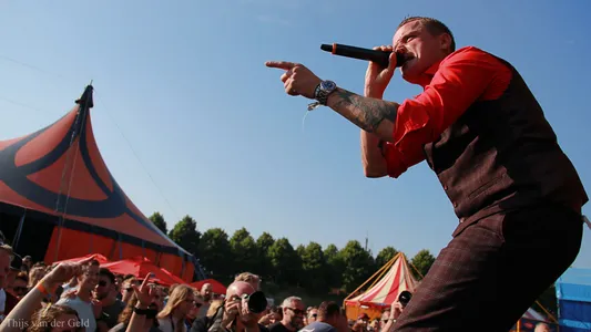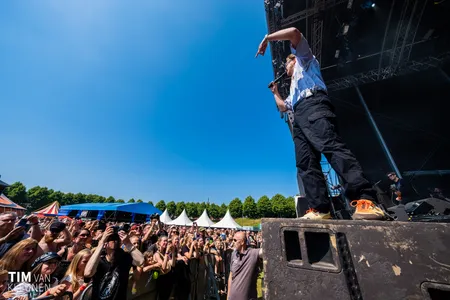 Waar Within Temptation iets te veilig de headlinespot pakt en met ultralelijke vlammenfilmpjes de main in slaap speelt is het echt vuur bij De Likt, letterlijk. Iedereen die een beetje De Nieuwe Lichting-programmering heeft gevolgd heeft Jordy Dijkshoorn al de hele dag ingevlogen zien worden, maar nu als afsluiter in de Tent laat De Likt zien hoe het dus echt moet. De laatste keer dat ze op Vestrock stonden waren ze opener van het festival, nu zijn ze de afsluiter. Met die lekker vieze lange jas komt Jordy heeft het vuur in zijn ogen, maar ook “de dj, de outfit en de drank” als hij begint met ’Ctrl, Alt, De Likt’. We zien Jordy zijn broer op het podium halen om op zijn schouders door het publiek te hossen, we zien Jordy en Giorgi Kuiper hun dansjes spiegelen, we gaan ‘OPEN! OPEN!’ om de wall of death in te gaan. Er is eigenlijk niets wat deze show legitimeert omdat het exact dezelfde is als die van 2018, op een paar nummers na, maar het is de overwinning van De Likt die het zo mooi maakt.