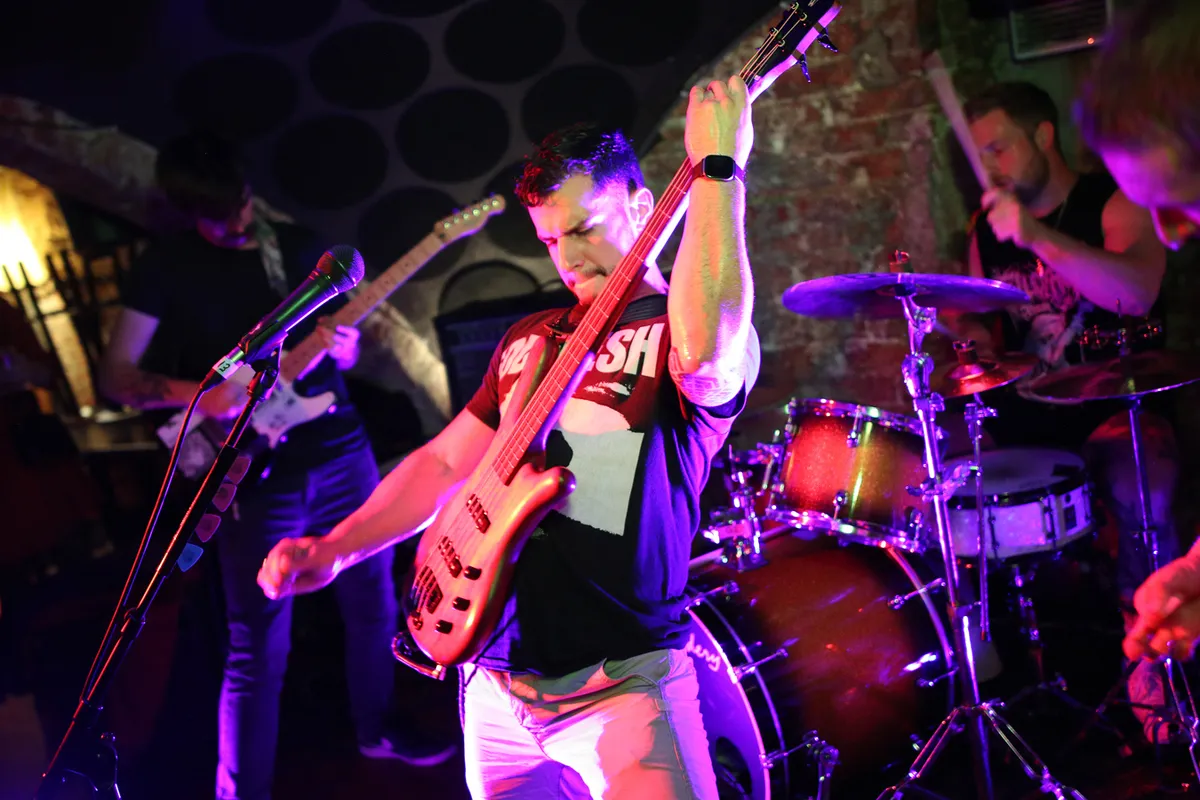 Zal het een beetje druk worden? Dat is de vraag die op ieders lippen ligt vanavond. Wordt het druk genoeg voor de opzwepende muziek van Slumbercloud? Een band die nog maar twee keer op het podium heeft gestaan is normaliter niet de meest trekkende attractie. Toch krijgen ze het voor elkaar, en raakt de kelderbar een kleine tien minuten voor showtime vertrouwd vol. Wanneer Slumbercloud, al bukkend voor de topjes van de PA, plaatsneemt voor de op Jupiler kratten getilde gitaaramps, verandert de energie. Hier broeit wat. Het viertal begint met een prog-achtige start. Een basgitaar die met veel chorus hoog op de nek wordt bespeeld krijgt de ruimte om zich te laten horen. Een verschijning die niet vaak meer voorkomt in moderne rock. Peter Hook achtige baslijnen voeren de boventoon, terwijl de gitaristen op de achtergrond blijven.