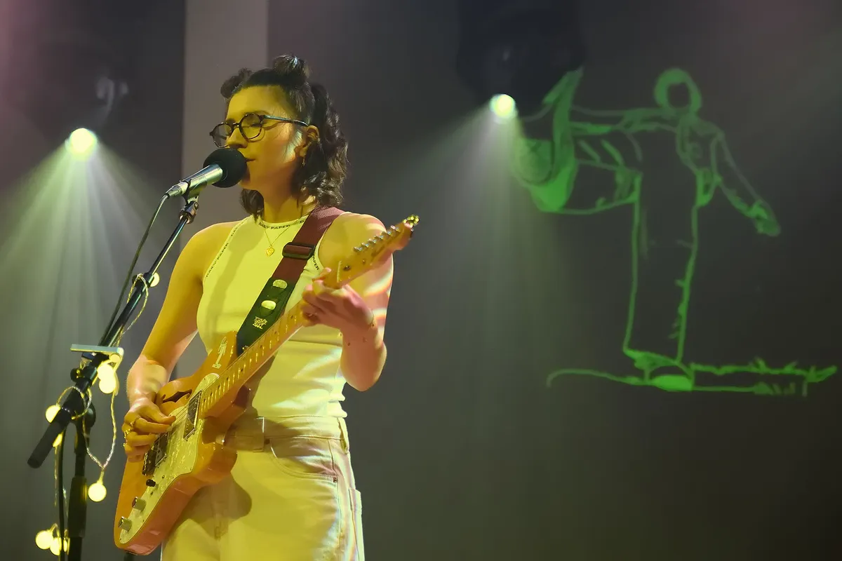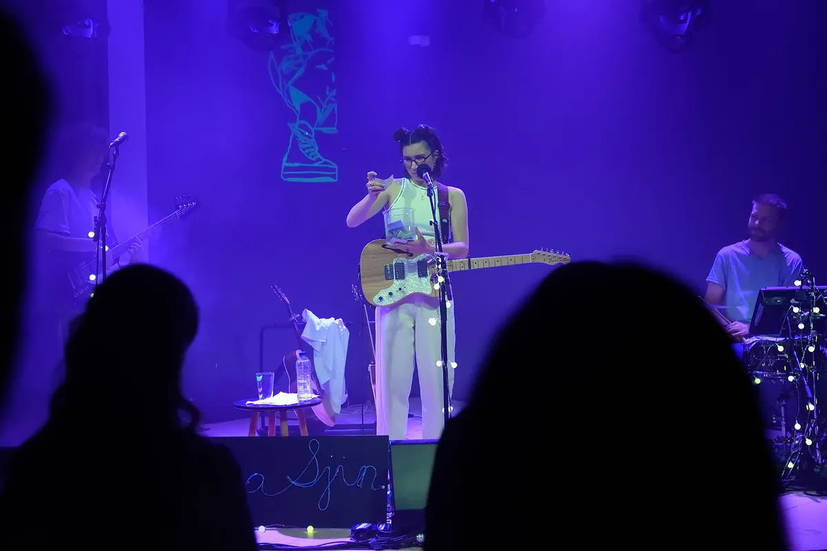 In haar muziek combineert Laura Sjin oprechte, eerlijke, en mooie teksten met een melancholische en dromerige producties. Waar haar eerste EP nog erg americana klonk, hebben haar tweede en derde EP een hele andere sound. Op ‘of ik jou nog mis’, uitgekomen in 2021, werkte Sjin samen met singer-songwriter en producer Benny Sings die haar demo’s perfect aanvulde. In plaats van in de studio met haar band, nam ze haar tweede EP grotendeels op in haar slaapkamer. “Ik heb thuis best veel opgenomen en het half zelf geproduceerd. Benny Sings had een heel fris perspectief op produceren. Ik dacht dan veel te ingewikkeld en dan zei hij “dit moet je gewoon zelf doen”. Misschien gaf dat wel het laatste zetje om het ook helemaal zelf te doen,” vertelt Sjin aan de telefoon. Want op ‘dingen die toch wel gaan gebeuren’ heeft ze twee van de vijf nummers zelf geproduceerd, de andere drie in verschillende samenwerkingen met andere producers waaronder Launchable Socks, die ook de support act van de show was. “Ik werkte mijn nummers zelf al redelijk ver uit. Vaak begin ik met gitaar als ik schrijf en bouw ik het later uit op m’n laptop. Ik dacht vaak, als ik het zelf heb gemaakt, is het nog niet af.” Tot nu, dus. En, zo vertelt ook ze tijdens de show, zijn ‘nachtmerrie’ en ‘voor ons bedoeld’ toch haar favoriete nummers van de EP omdat ze die zelf gemaakt en geproduceerd heeft.