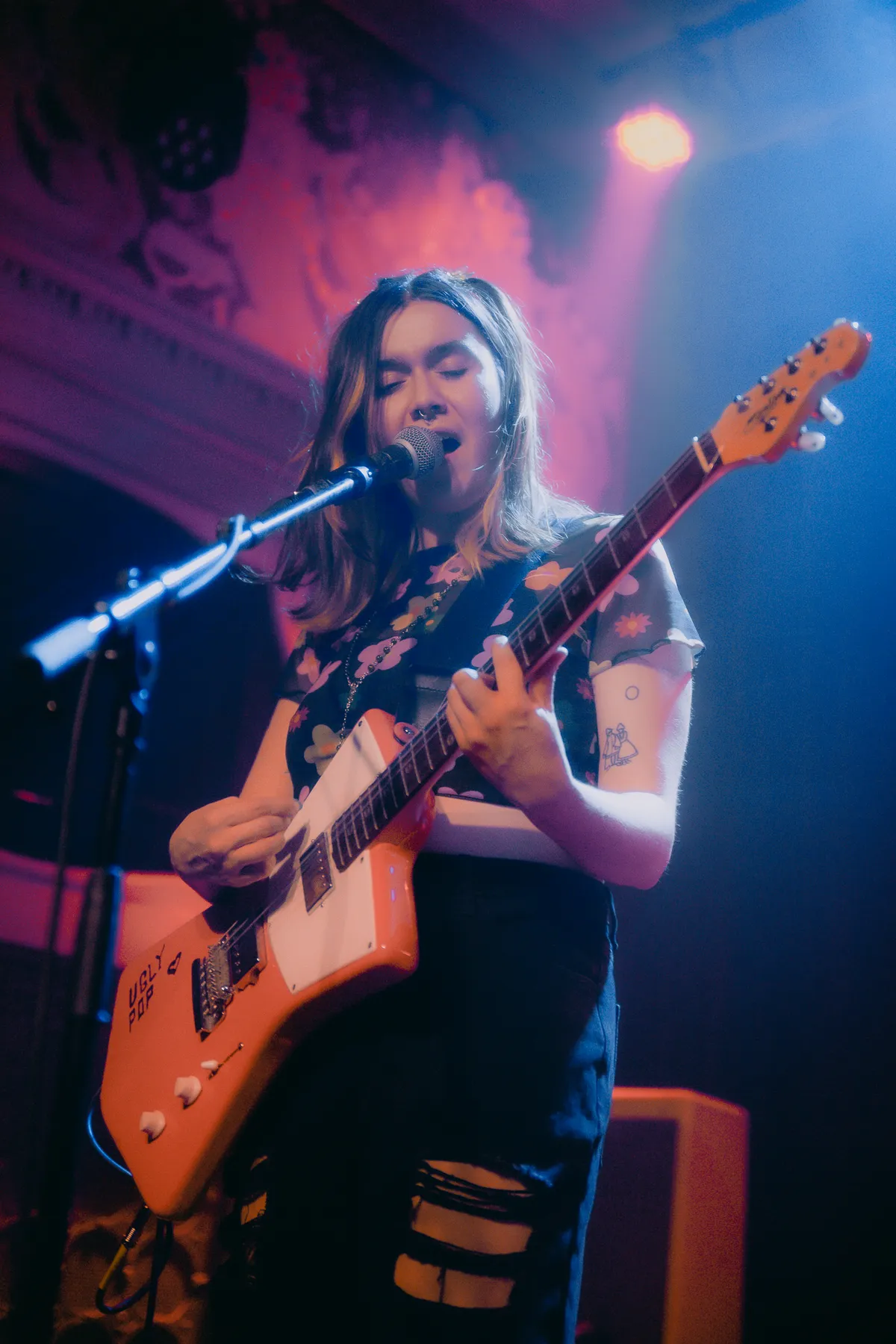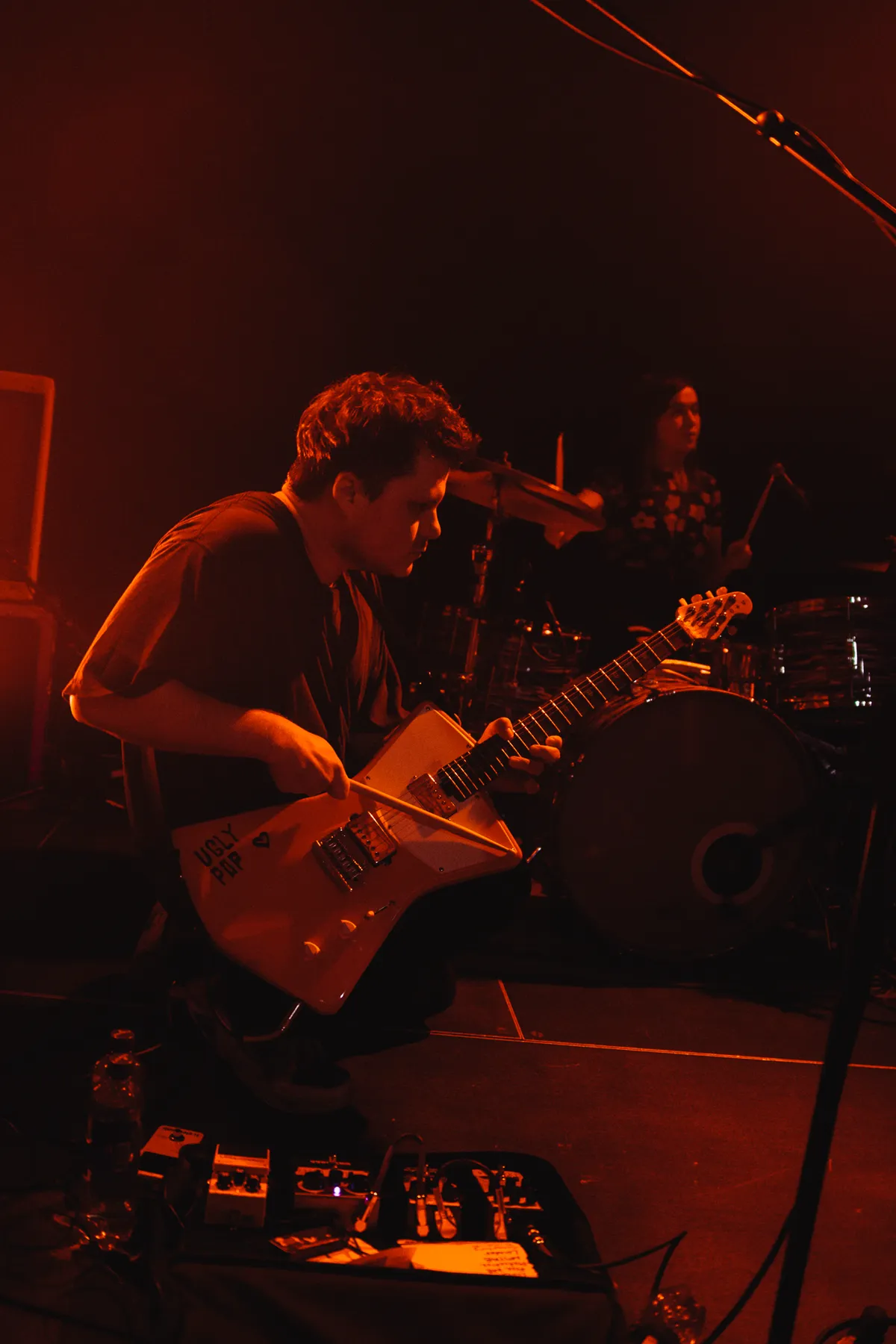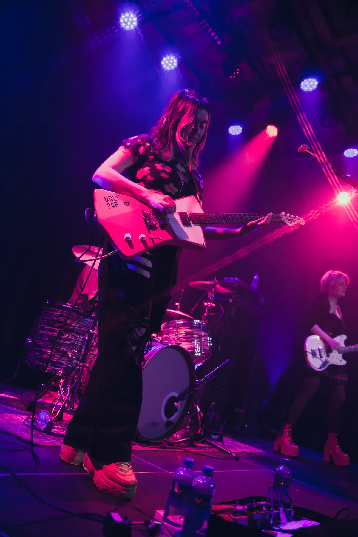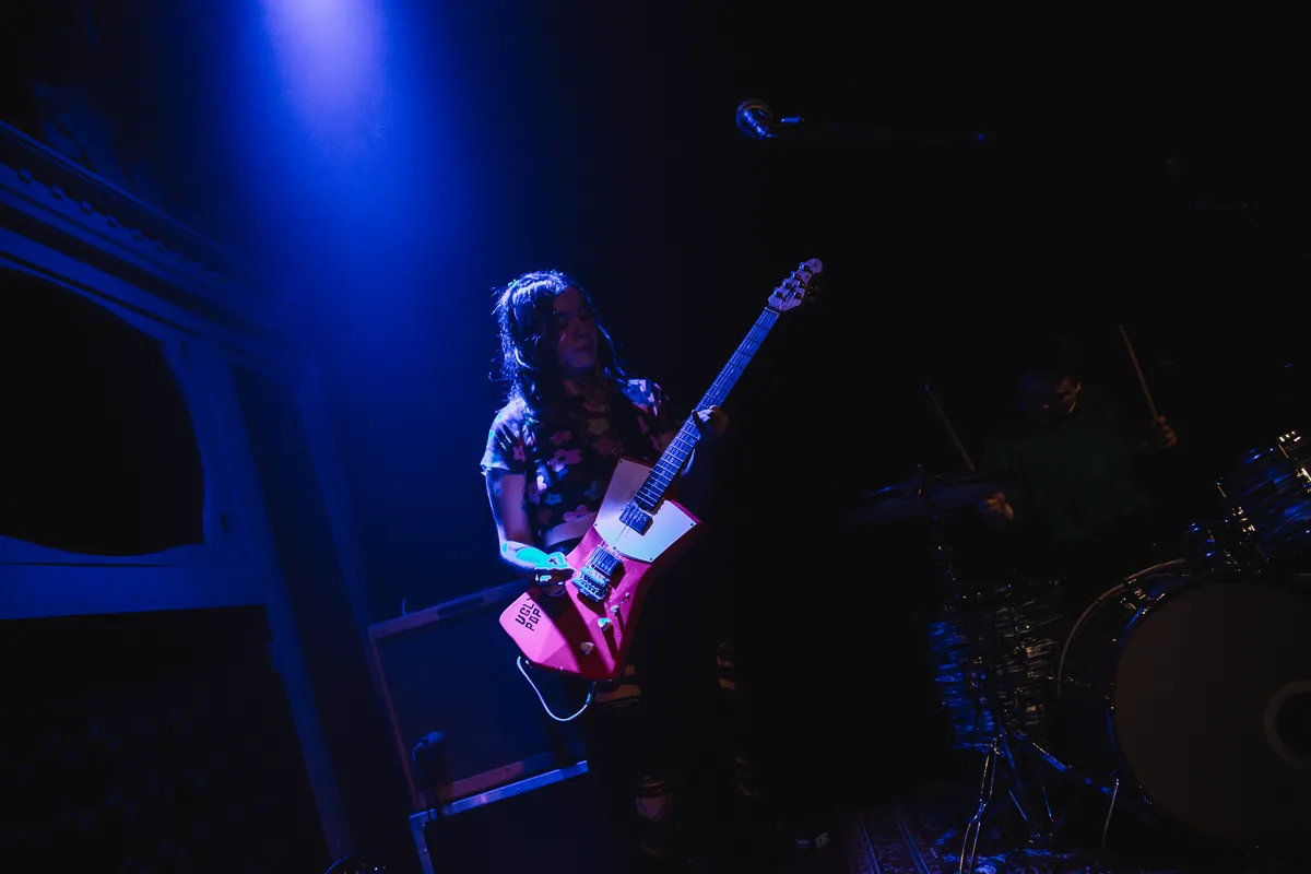 Wel staat Skating Polly op 10 februari op de agenda van Luxor Live. De bovenzaal is niet uitverkocht, maar wel gevuld met een afwisselend publiek. Om precies half negen stappen de leden van het Amerikaanse drietal het podium op. Direct nadat Kelli de band voorstelt met een kalm “Hi, we’re Skating Polly”, barst de zaal al van het geluid. Iedereen die geen oordopjes bij zich heeft wordt direct afgestraft. Deze band is hier niet om rustig aan te doen en dat wordt duidelijk vanaf het eerste moment. De fuzzy bastonen en hoge gitaargeluiden vliegen de concertbezoekers om de oren. In het begin schrikt het publiek hier een beetje van, maar dat maakt het rocktrio niks uit. Ze blijven alles geven en na een paar nummers krijgen ze iedereen mee. Mensen beginnen te headbangen, krijgen zin in meer en ook de bandleden lijken plezier te hebben in dit eerste optreden van hun Europese tour.