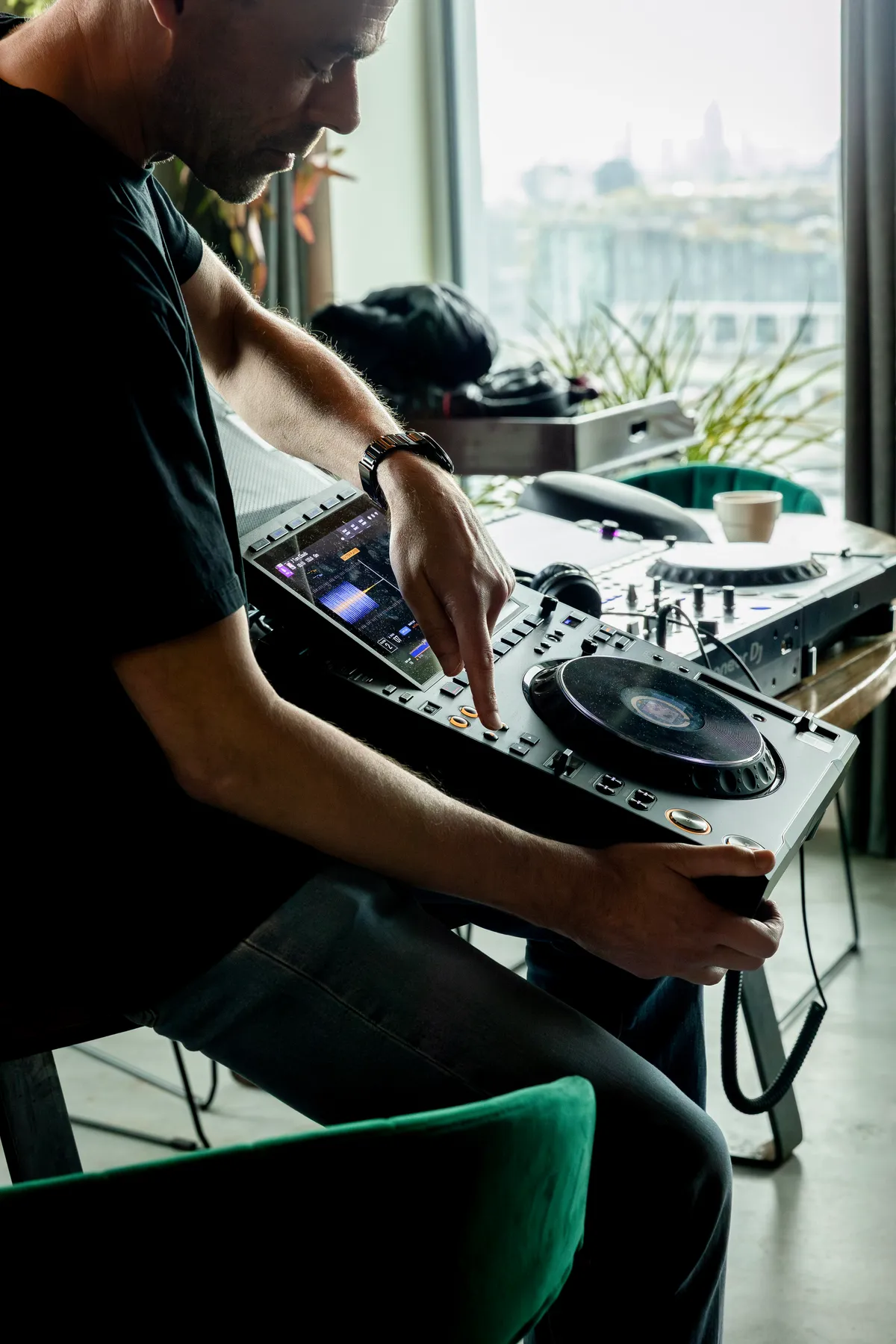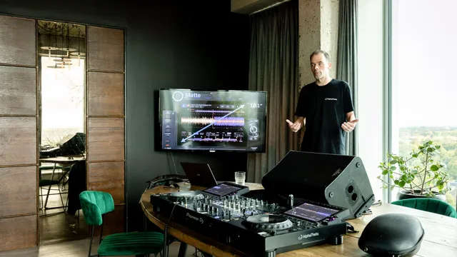 Achter het nieuwe lichte bakbeest (lees: 6 kilo per player) op de houten tafel boven in de toren begint Jeroen Groenendijk, al meer dan 25 jaar productspecialist bij Pioneer DJ, zijn workshop aan de buitenkant. ,,De Pioneer DJ-logo’s op de voor- en zijkant zie je hier niet meer, nu een AlphaTheta-logootje.” Een onderdeel van een merk en naam zonder ‘DJ’ erin, wat past bij de missie van het bedrijf om muziek togeankelijker te maken op verschillende plekken en niet enkel in het nachtleven van de monopolist binnen de DJ-gearwereld.