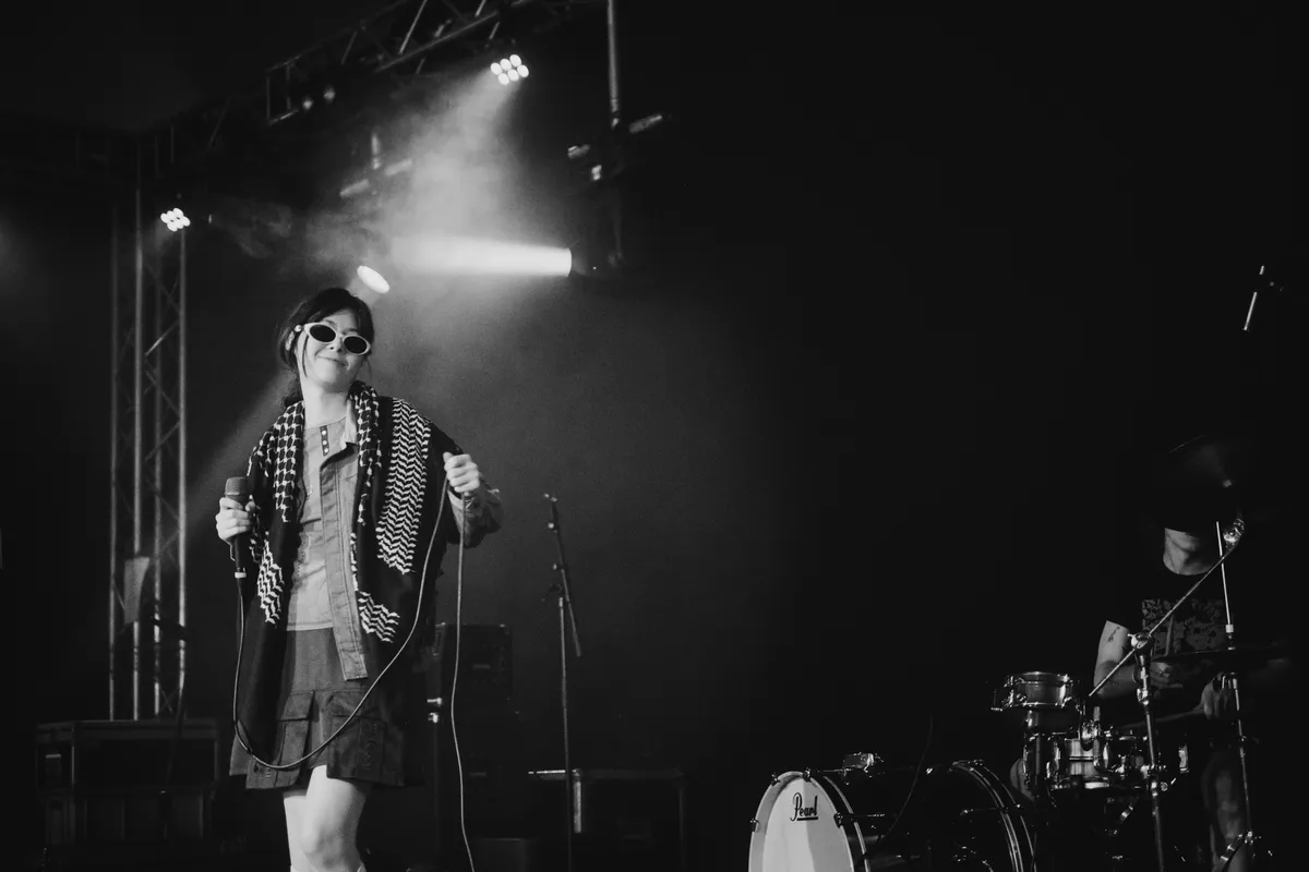 Zangeres Rachel Brown mompelt wat in de microfoon en het geluid lijkt bij vlagen alle kanten op te gaan. Maar gek genoeg werkt het wel. De ongepolijste, rauwe aanpak past bij de uitstraling van de band. Ondanks de chaos voel je de spanning en energie die onder de oppervlakte borrelt. Naarmate de show vordert, worden de nummers ook steeds sterker.