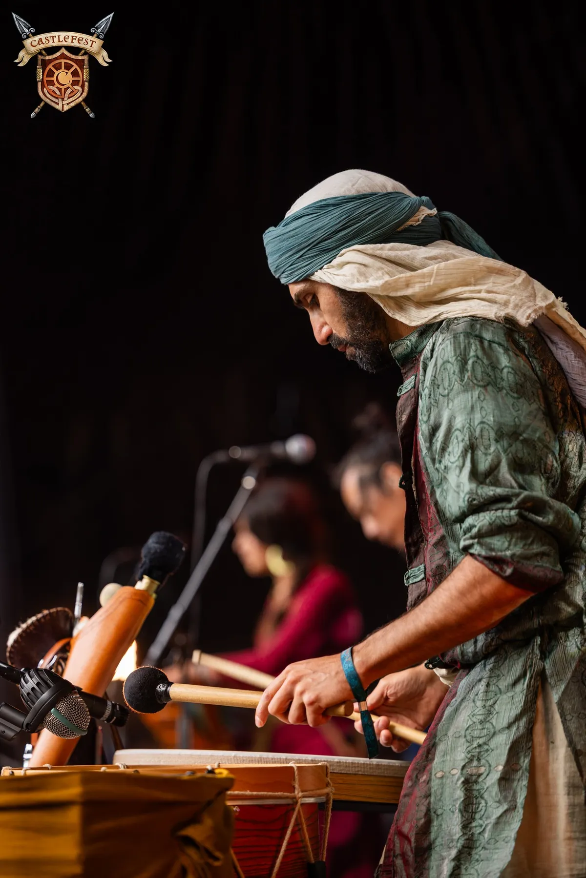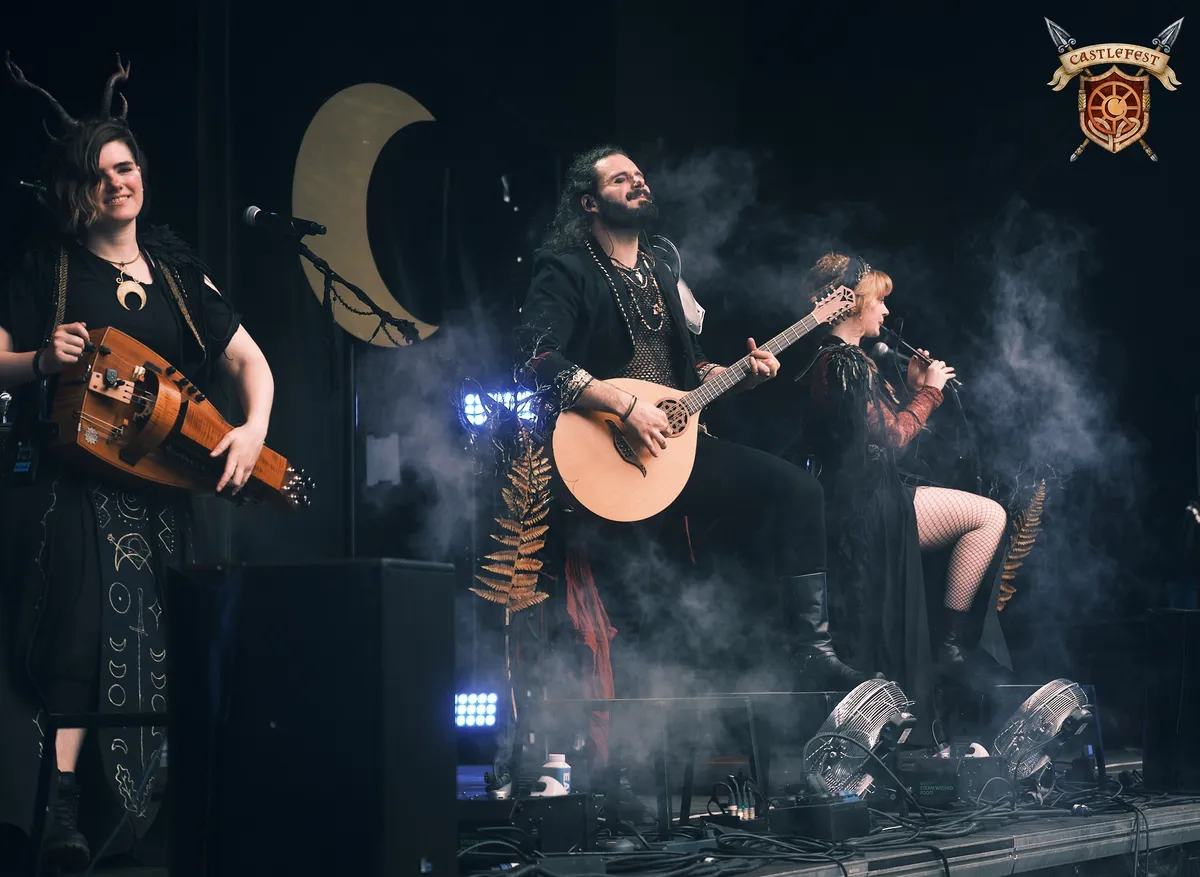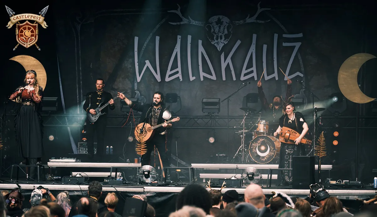 Waldkauz maakt Duitse pagan folkrock, en bij aankomst bij de Village Stage is er al een ongeduldig publiek aanwezig. Bouzouki, draailier, Keltische harp, doedelzak met een stevige soundscape erbij, klinkt het in de omschrijving, dus de anticipatie is te begrijpen. De band is fraai uitgedost in geweien, pauldrons en gewaden, en de start van de set wordt gekenmerkd door vreemde roeibewegingen en pseudo-buikdansen in de voorste linies van het fanleger bij de stage. De producer komt af en toe meezingen, en er is zelfs een liedje speciaal geschreven met de hoop dat het op Castlefest uitgevoerd kan worden.