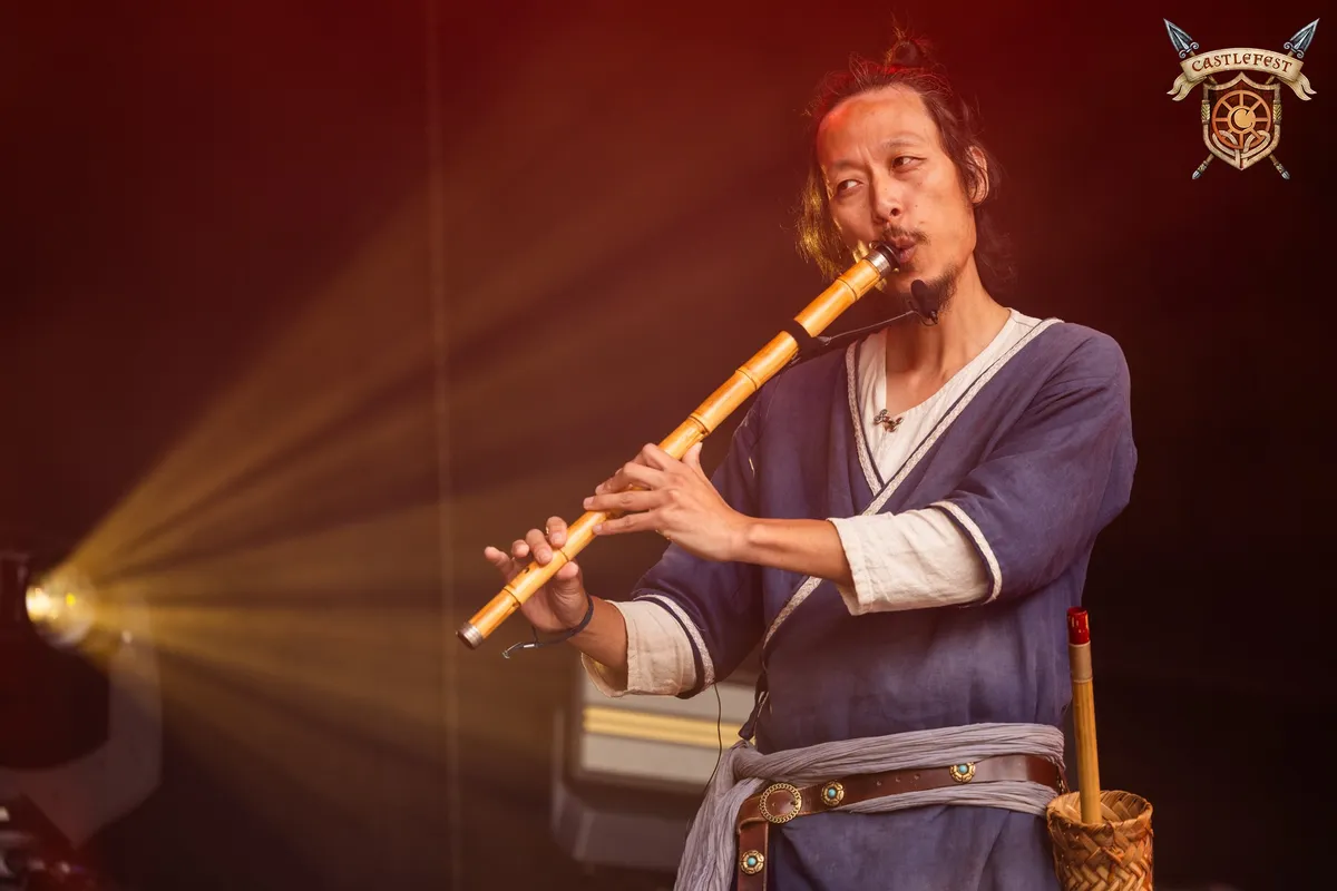 We beginnen bij de goed verborgen Village Stage. Aldaar maakt Emian paganfolk (dit genre zullen we vandaag vaker terugzien), met een vleugje electronica. Het duo opent met draailier en harp, ineen simpel nummer waarbij tussen de toeschouwers de rokken en gevlechte baarden in de rondte tollen. Een aangenaam briesje verlicht de bedriegelijke warmte. De multi-instrumentalisten pakken vervolgens fluit en toetsen voor een lied waar een vloek op rust, die je over je afroept als je niet meedoet me de woordeloze kreet (heren krijgen als tip om in hun ballen te knijpen om de juiste toonhoogte te bereiken). Daarna wordt het dynamisch met een ode aan de natuur (waar je ook heel goed de liefde op kan bedrijven, zegt de man van het stel op de stage). Gelukkig blijft het publiek braaf, en velen zitten op kleedjes te herstellen van drie dagen feest. Sommige campinggasten hebben blijkbaar meerdere cosplays meegesleept, mocht ik luistervinken, en er valt bijna geen enkele Halloween budgetbak kostuum te ontwaren.