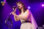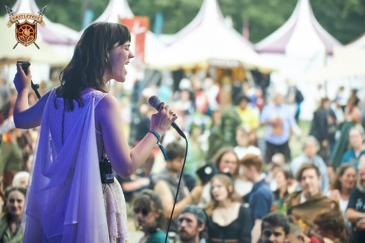 Daisy Bellis is samen met Solarcycles op de zaterdag de Leidse vertegenwoordiging op deze editie van Castlefest, dus daar kunnen we als platform niet omheen. De Meadow Stage is nog een beetje leeg vooraan, maar dat geeft het alleen maar meer niche elan. Haar begeleidende band bestaat uit synths, gitaar en drums, en ze heeft ook nog eens een eigen piano. De zangeres heeft voor dit optreden een toepasselijk kostuum aan die het beeld van een pagan priesteres oproept (de naaister van de jurk staat in het publiek en blijft natuurlijk niet onbenoemd). Enfin, we gaan de setlist af. 'Don't Come Near Me' is meteen een goed voorbeeld hoe de bandleden beurt om beurt de zang omkransen met hun instrumenten zonder deze te overstijgen, en 'Etna' is vanzelfsprekend een vulkaanuitbarsting die een zwoele kant van Daisy's stem laat zien, met rockende ritmes en een verrassende synth-brug als aanvulling.
