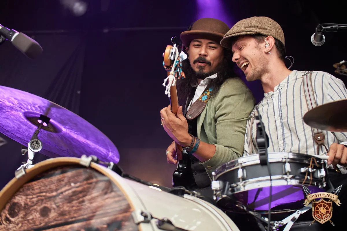 De bomen houden op zodra we bij de Meadow Stage arriveren, waar Sunfire speelt. Alhoewel ik ze zeer recentelijk al heb mogen recenseren tijdens de Midwinterfair op het Archeon vorig jaar, is er geen ontkomen aan deze rockende Western posse. Als je laat arriveert, is het verdomd lastig om een goed plekje te bemachtigen, en er is voor sommige lieden nauwelijks ruimte om überhaupt te klappen. Populariteit gaat gelukkig gepaard met kwaliteit, en vanaf de viool van 'Jolene' ben ik weer aan de haak geslagen. De frontman bespeelt zijn gitaar als hij hem van wrijving in de fik wil laten vliegen tijdens dit cunty country nummer, en de hossende festivalgangers moeten tegen elkaar aanschurken om te kunnen dansen.