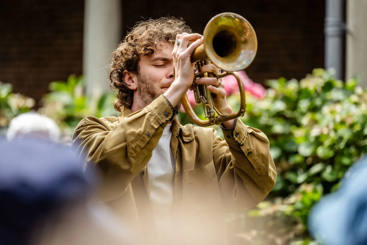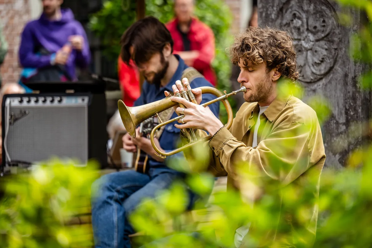 Ook in het Pieter Loridanshof brengt Äktaro, een duo bestaande uit Bo Floor en Siebren Smink, de volksmuziek fonkelend ten tonele. De tedere melodieën van bugelist Floor staan compleet in contrast met zijn spel in bombastisch blaasspektakel Gallowstreet, waar we hem ook van kunnen kennen. Floor kan het allemaal: zijn spel is delicaat, en glijdt prachtig over de gitaar van Smink heen. Samen spelen ze hun interpretaties van Zweedse volksmuziek, maar door hun improvisaties en de idyllische setting van het hof is het makkelijk om je in welke dagdroom dan ook te verliezen.