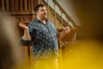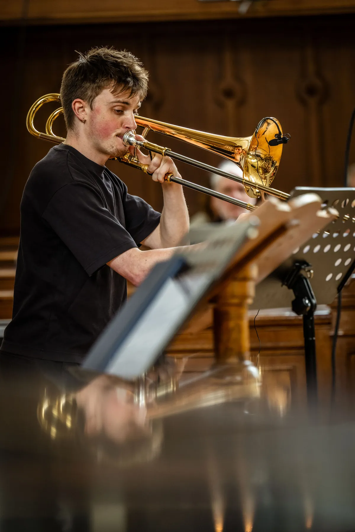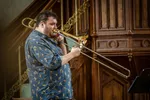 Het blokkenschema duidt niet alleen tijden en plaatsen aan, maar ook in welke categorie van het programma een optreden valt. De titel Club Church staat in het roze gemarkeerd, onder de noemer "Explore". Sebastiaan Kemner en Andrew Macleod zijn de twee trombonisten die centraal staan in deze interdisciplinaire compositie die, met behulp van een muzikale soundmixer, schakelt tussen muziek, soundscapes en fragmenten gesproken tekst. Het werk is bedoeld als verkenning op de grens van religie en queerness, met de befaamde gayclub The Church uit Amsterdam als metafoor in de Lokhorstkerk als decor. Kemner en Macleod beginnen hun spel staand naast elkaar, maar in plaats van klank te maken, verplaatsen ze dusdanig lucht door hun instrumenten dat het een nabootsing van windvlagen wordt. Langzamerhand prikken er, in complete beheersing, langgerekte tromboneklanken ons gehoor binnen. Zowel de warmte die het koperinstrument voort kan brengen, evenals de scherpte, worden geëtaleerd. Kemner en Macleod verschuiven tijdens elk gesproken intermezzo met hun instrument, voeren zelfs een halve choreografie uit door ze traag door de lucht te bewegen, om op een andere plek tegenover elkaar te komen staan. Uiteindelijk komen ze beiden terecht achter de houten schotten die aan weerszijden van de kerkzaal zitten, en zien we alleen nog hun schuifbuizen. Na het duet dat ze verscholen spelen, zoeken ze weer de toenadering tot elkaar. Eenmaal teruggekomen in het midden, worden ze vergezeld door twee extra trombonisten, waarmee we het laatste spetterende deel van Club Church in gaan. In kwartetvorm blazen en brommen de muzikanten mee met een beat - we trillen spontaan uit de houten banken.