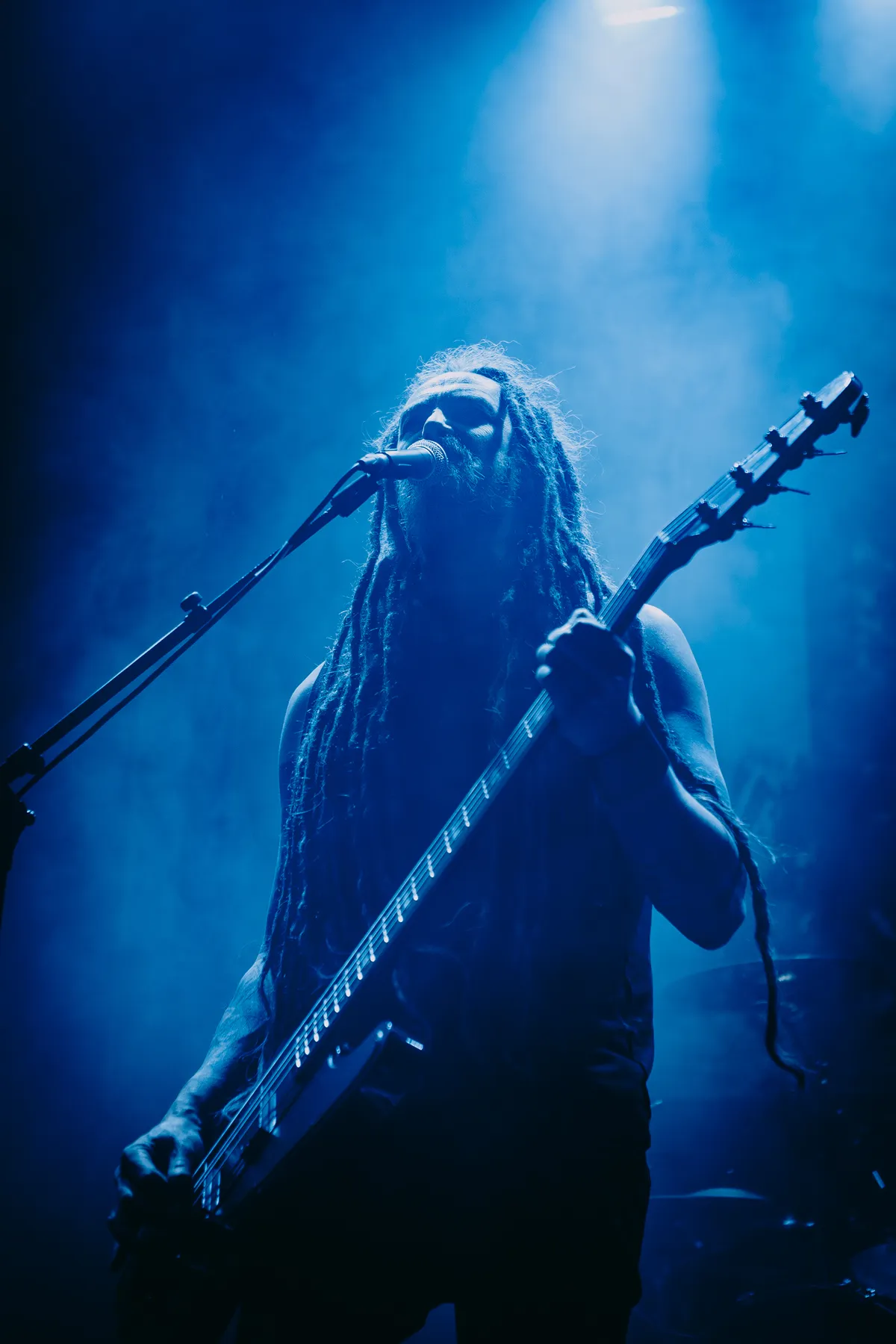 Vervolgens is het even omschakelen voor Bong-Ra. We zien drie van dezelfde muzikanten als bij de eerste band, maar dit keer met een totaal ander geluid. Dit project van Jason Köhnen vindt zijn oorsprong in de rauwe wereld van breakcore, maar heeft zich de afgelopen jaren ontwikkeld tot een veel zwaarder en donkerder beest. De elektronische chaos van weleer is niet verdwenen, maar wordt nu aangevuld met invloeden uit doom en metal, wat resulteert in een intens en confronterend geluid.