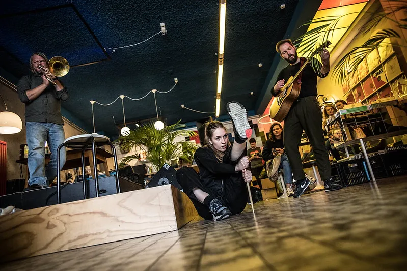In De Utrechtse Boekenbar presenteren illustrator Floor van het Nederend en muziekduo Wanderwelle de graphic novel De duizendpoot, die begin oktober is verschenen. Onderdeel van de presentatie is een live set van Wanderwelle in de kelder van de Boekenbar. Wanderwelle speelt hun laatste album ‘All Hands Bury The Cliffs At Sea’. De nummers zijn vooral ambient soundscapes, gemaakt met ondere anderen een laptop, analoge synthesizer, effecten en een elektrische gitaar die met een strijkstok wordt bespeeld. Ook gebruiken ze een glazen plaat, waaraan een microfoon is verbonden en die met allerlei ‘pennen’ en bundels ijzerdraad wordt bespeeld. Die geluiden worden vervolgens gesampled en weer bewerkt met effecten.