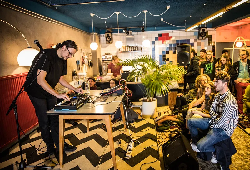 Koffie Leute staat vandaag helemaal in het teken van cassettes. De drie optredens zijn gecureerd door labels die hun muziek (gedeeltelijk) op tape uitbrengen en er is een speciale cassettemarkt, in aanvulling op het ruime assortiment dat de koffiezaak/platenshop zelf al heeft.