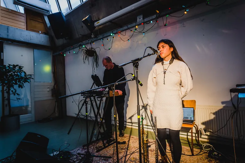 Het duo is super gefocust en kijkt elkaar nauwelijks aan. Desondanks mengen de geluiden mooi tot een samenhangend geheel. In de donkere, intieme kelder, waar je door de openstaande deur de sloepen langzaam door de Vaartsche Rijn ziet varen, is het een fijn en welkom rustmoment tijdens de hectiek die een festival als dit met zoveel muzikale prikkels ook kan zijn.