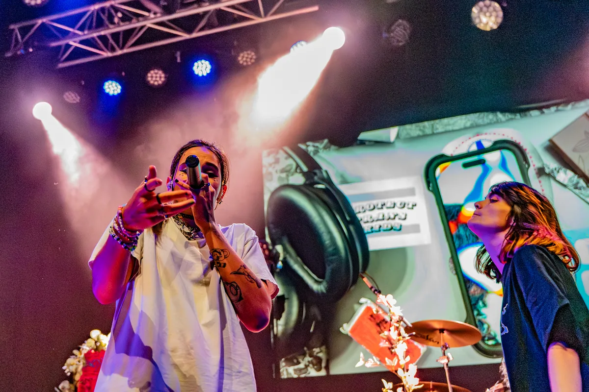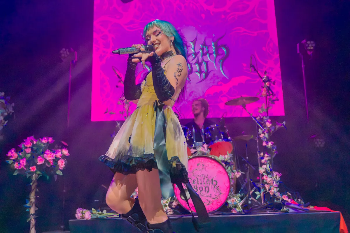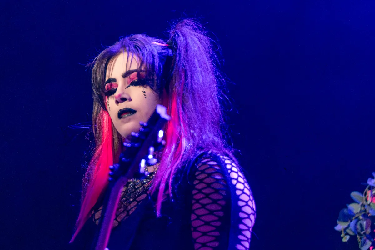 Een betere support act dan Changeline had Delilah Bon waarschijnlijk niet kunnen kiezen. Deze artieste uit Grenoble (Frankrijk) maakt experimentele, genre-overstijgende trap metal, die ze live met ongekende energie en passie over het publiek uitstort. Vergezeld door rapper DAMAG3 – en een bemoeizuchtige avatar op de achtergrond – brengt ze vanavond hoofdzakelijk nummers van THE.DRAW.OF.A.NEW.SHAPE uit april 2025. Dit album gaat over haar persoonlijke ontwikkeling als muzikante en als mens. Over de worsteling met genderidentiteit en mentale problemen. Over het accepteren van verandering en groei. Over loslaten en verdergaan. Changeline is er klaar mee, met alle haat en weerstand en transfobie.