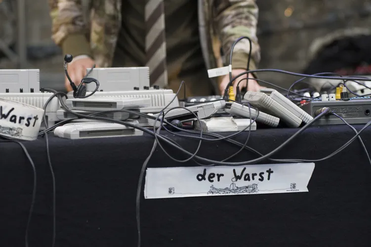 Altijd wel leuk om te zien als dj’s aan de slag gaan met spelcomputers. Der Warst, ook bekend onder de naam Simon Schäfer, heeft in zijn repertoire een Nintendo DS, een Gameboy en de altijd betrouwbare Super NES (die van mij werkt ook nog steeds!). De beats zijn lomp en keihard en er valt goed op te dansen. Der Warst zelf gaat ook enthousiast tekeer.