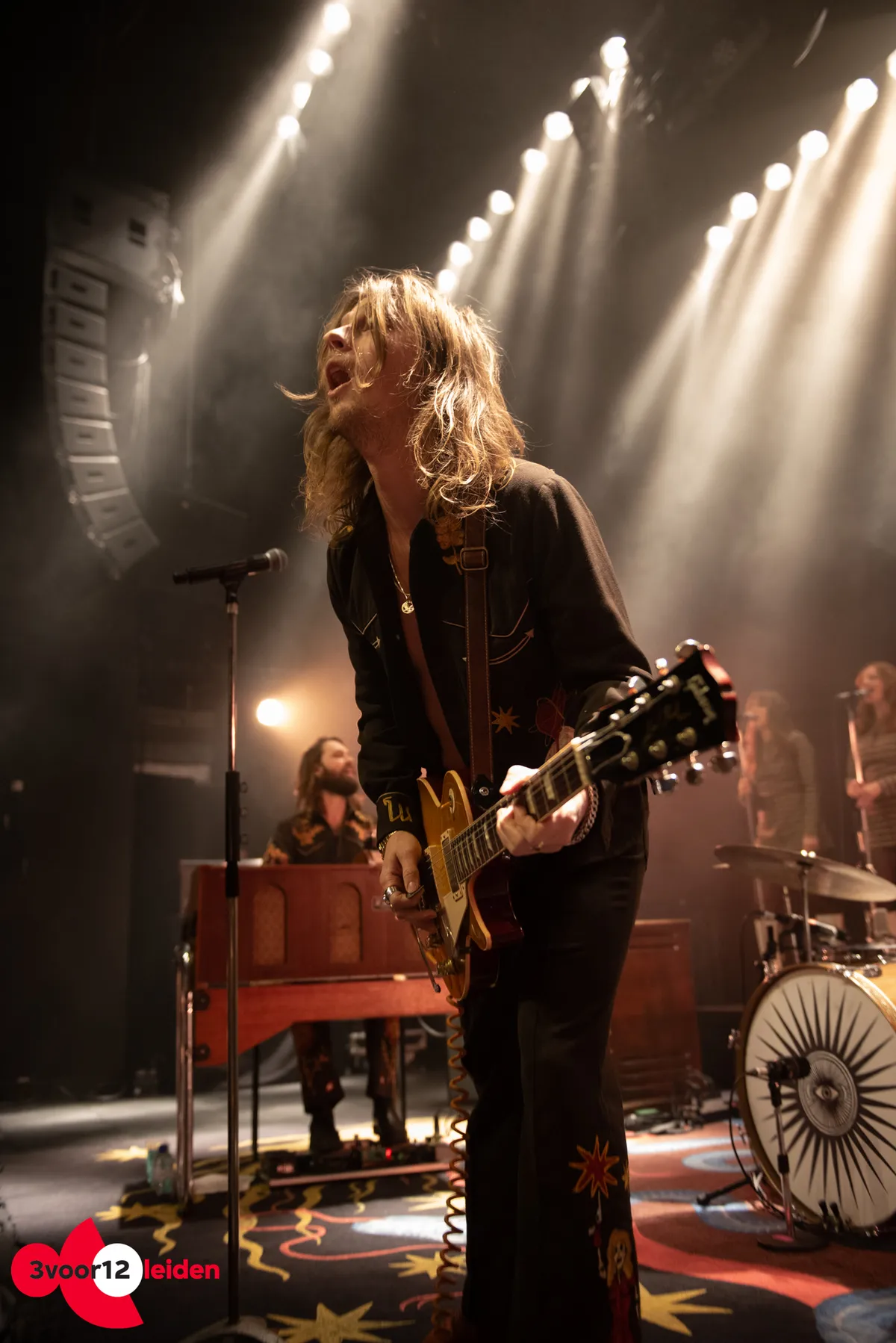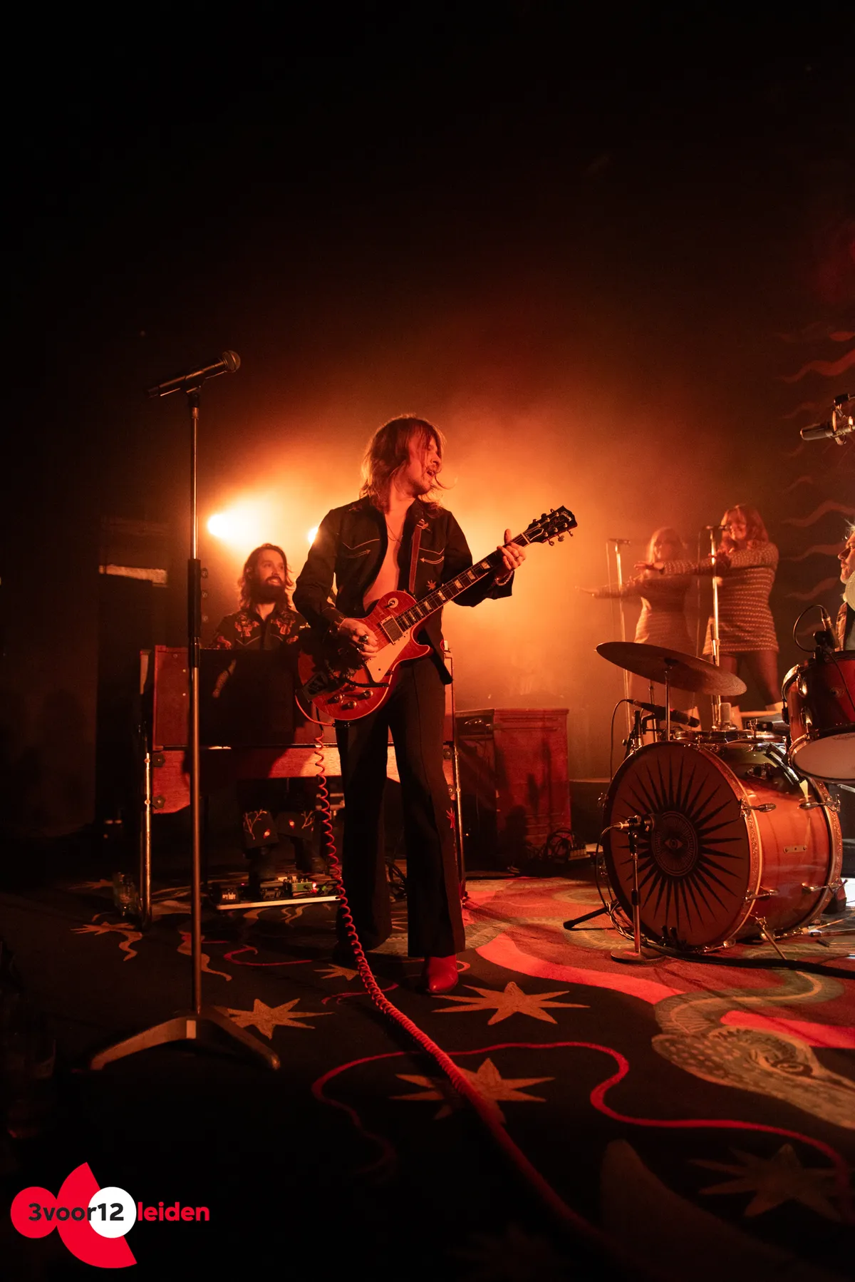 Als goden komen ze het podium op paraderen, gehuld in zelf ontworpen pakken met een seventies-uitstraling. Het spektakel op zichzelf is al een heel kunstwerk. De achtergrond van het podium is bekleed met een geborduurd doek en het immense tapijt maakt het geheel af. Nu de muziek nog. Het publiek weet nog niet wat hen te wachten staat, DeWolff weet dat wel. “Are you ready for some rock and roll?””Are you ready for the night traaaain?” schreeuwt zanger en gitarist Pablo van der Poel.