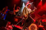 Naast de merch is er ook een nieuw album, Fuego!, uitgekomen op 4 december j.l. Ook zijn er twee nieuwe zangeressen aanwezig én de grote trots van de frontman, zijn nieuwe custom gebouwde gitaar (gemaakt door Ruben Sour), die hij bijna alle nummers de rest van de avond liefdevol en dankbaar gebruikt.
