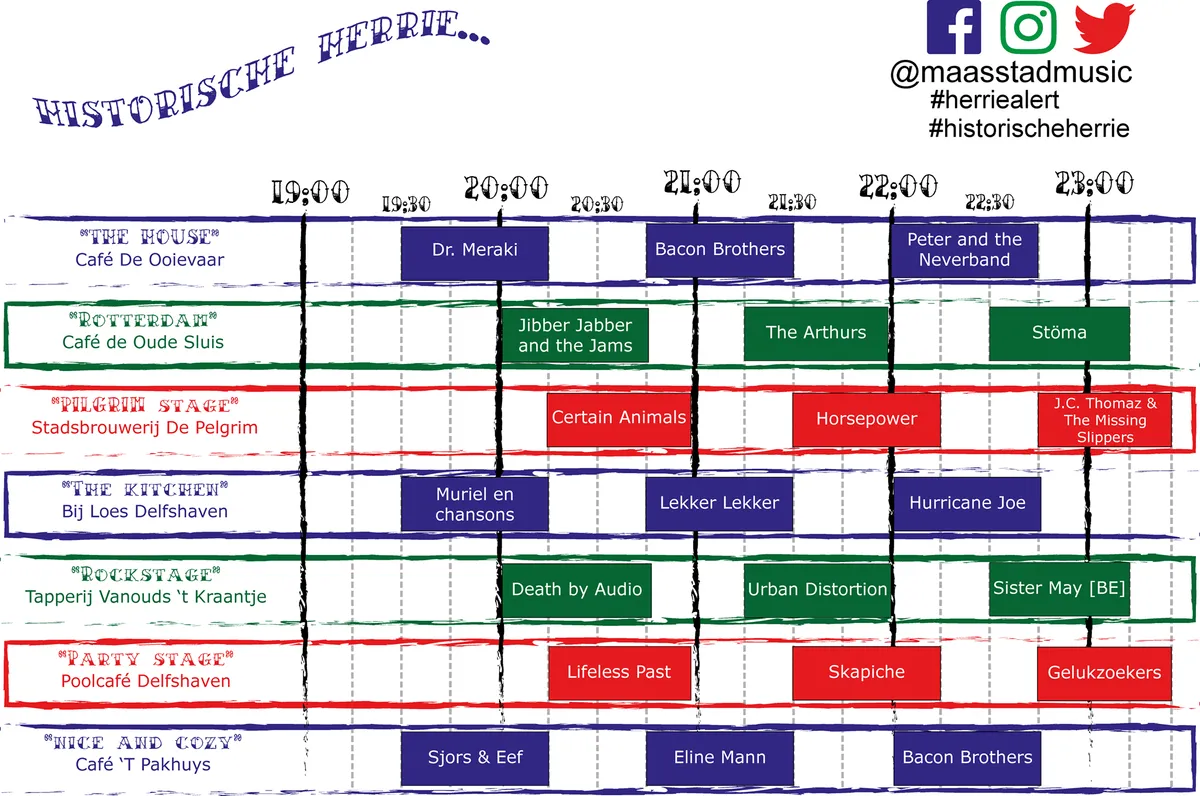 Het tijdschema vindt je via Tijdschema Historische Herrie