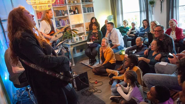 Op zondag 5 februari treden vierenveertig verschillende podiumkunstenaars op in huiskamers van alle soorten en maten, verspreid over alle wijken van Leiden. Bezoekers kunnen hun programma uitstippelen via glurenbijdeburen.nl/programma/leiden.