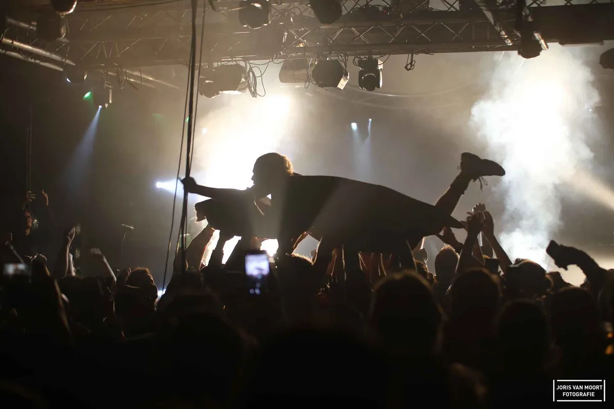 In de zaal het gaat het er flink steviger aan toe met local heroes Treehook! De band opent duisters, harde bass en een bak aan geluid. Langzaam raakt de band steeds meer uit hun wereld te ontsnappen en zweept het publiek verder op. Net een tikje harder, oudere liedjes en gloednieuwe tracks van hun laatste album. De show heeft alles wat je van Treehook verwacht. Chaos compleet is bij 'Sun Sets too Soon' als het publiek het podium op mag. Fantastisch!