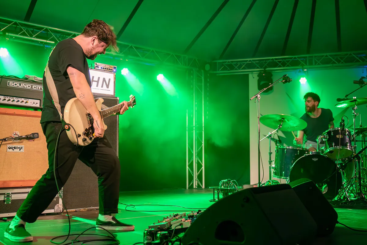 Verrassing van de avond is het Britse JOHN. Dit duo (John en John) uit de Britse hoofdstad Londen is overgevlogen naar Ovezande. JOHN werd eerder al opgepikt door BBC6 en The Guardian was ook al tijdig bekend geraakt met dit duo, dat wordt gezien als de nieuwe Idles. Voor nu, Ovezande. Het is harde noise en moddervet. Het publiek laat zich meenemen in hun set en de band blijkt de grote verrassing van het festival.