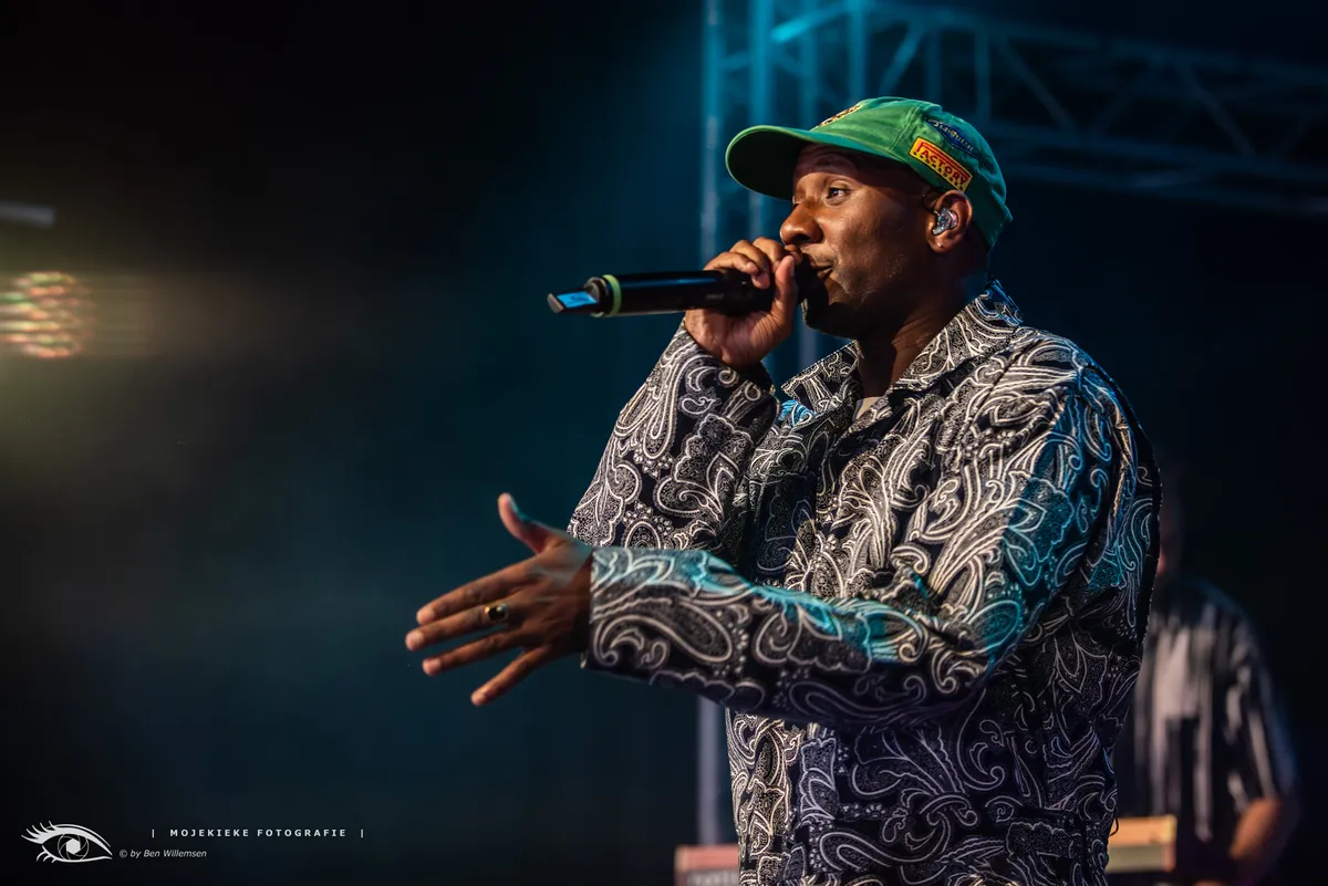 Twee decennia geleden drukte Dio zijn stempel op het Nederlandse muzieklandschap, en vandaag laat de doorgewinterde rapper op de Mainstage van Klomppop zien wat hij in huis heeft. De Amsterdammer haalt samen met zijn band klassiekers uit de kast die menig millennial terugzwieren naar simpelere tijden, maar strikt ook de jongere generaties met pas uitgebracht materiaal. Deze nieuwerwetse versie van Dio is energiek, megacharismatisch, en eindeloos creatief. Het is een tijdje stil geweest van zijn kant, maar hij heeft duidelijk niet stilgezeten. De veelzijdige artiest die er nu voor ons staat geeft een optreden die getuigt van een grote toewijding aan het vak.