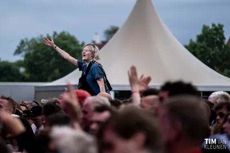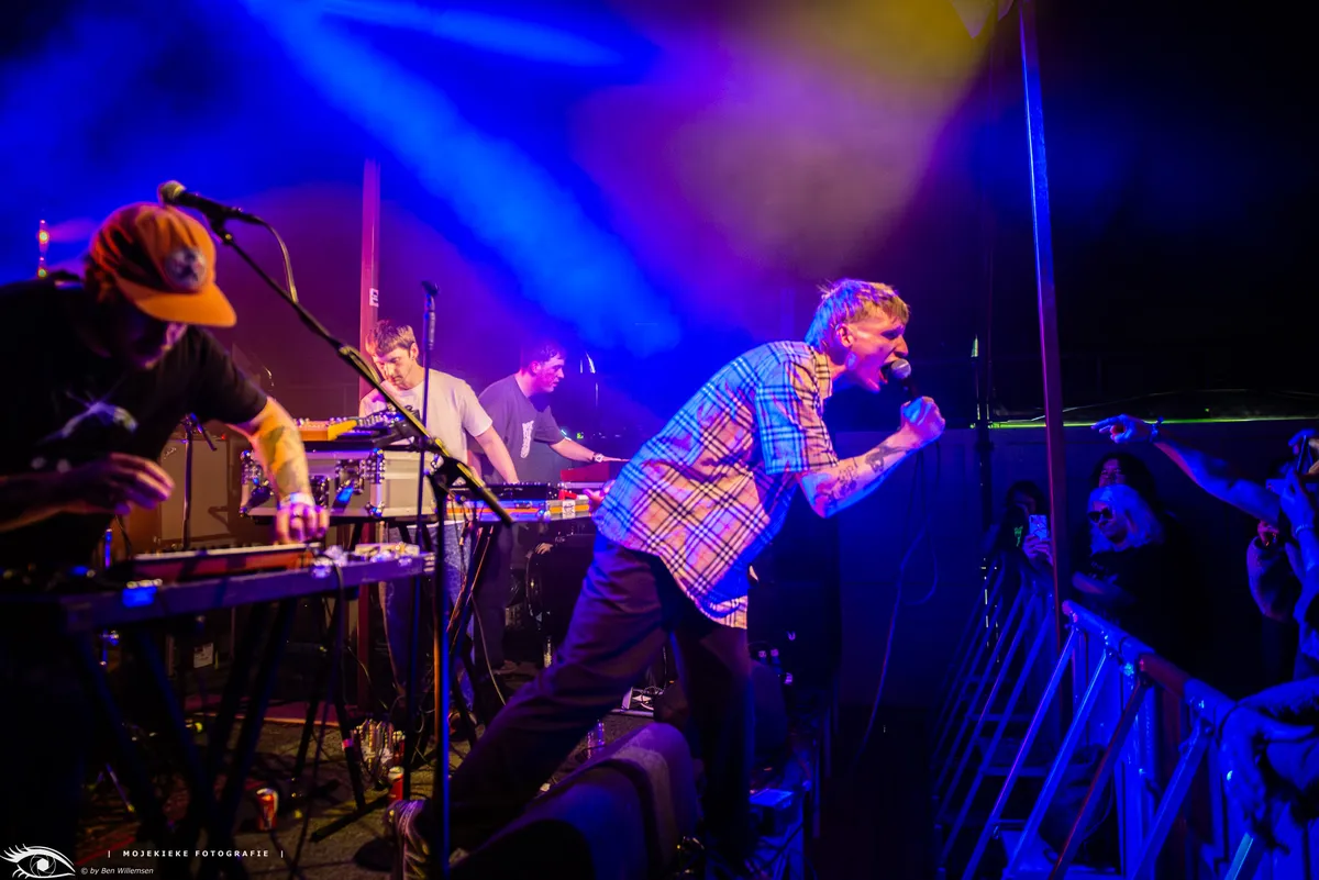 Tegelijkertijd speelt op de Main de Liverpoolse band Stone. Een fijne mengeling van post punk-rock, techno en Britpop. De band is aan een heuse zegetocht bezig, en wint overal het publiek. Ze hebben onder andere het voorprogramma gespeeld van Sam Fender, Yungblud, The Kooks en Inhaler. En dat hoor en zie je! De charismatische zanger Fin benut het gehele podium inclusief de (dit jaar nieuwe) catwalk voor het podium, en de band klinkt live lekker ruig, en toch enorm strak. Is die catwalk genoeg? Niet voor Fin, de zanger springt een aantal keer het publiek in, en opent zelf een voorzichtige Wall of Death.