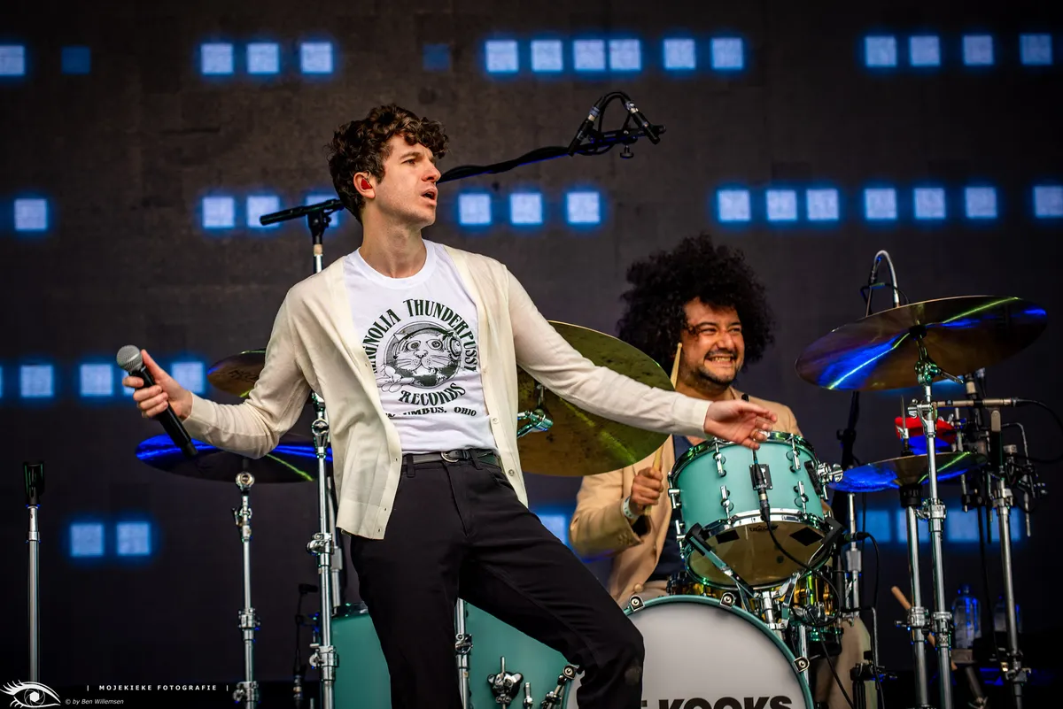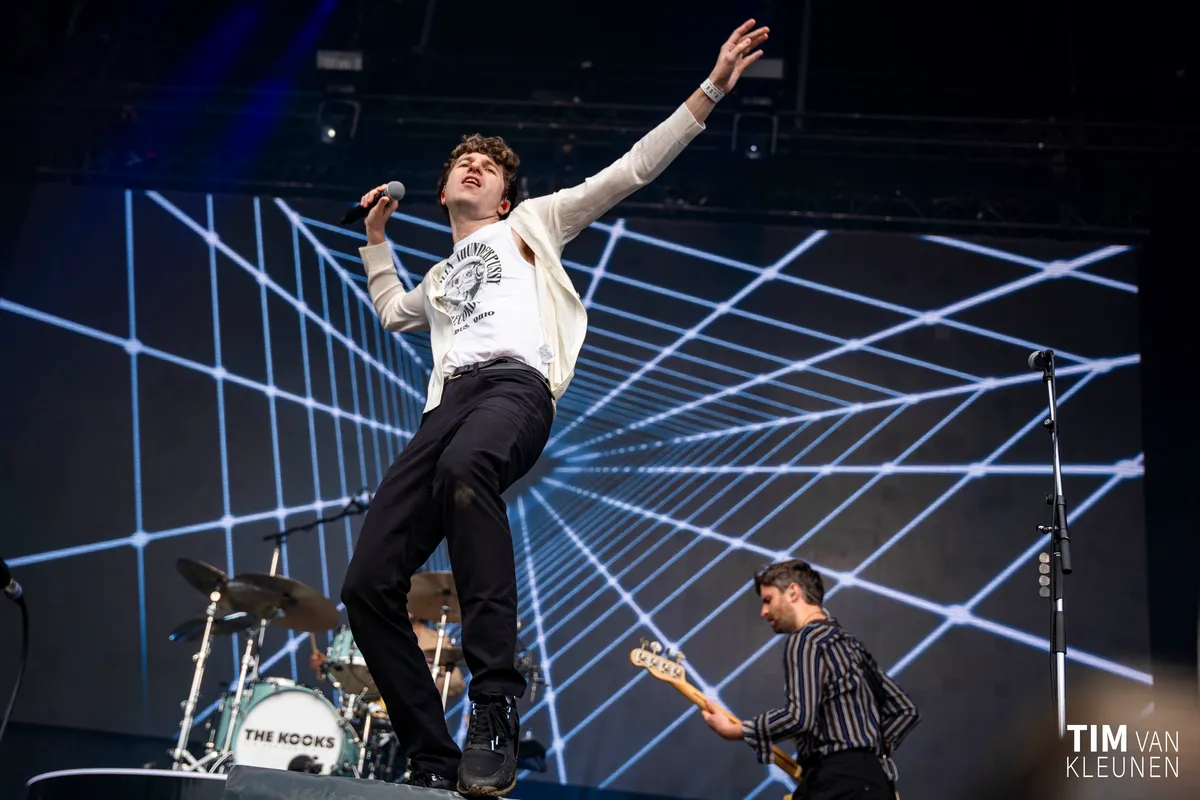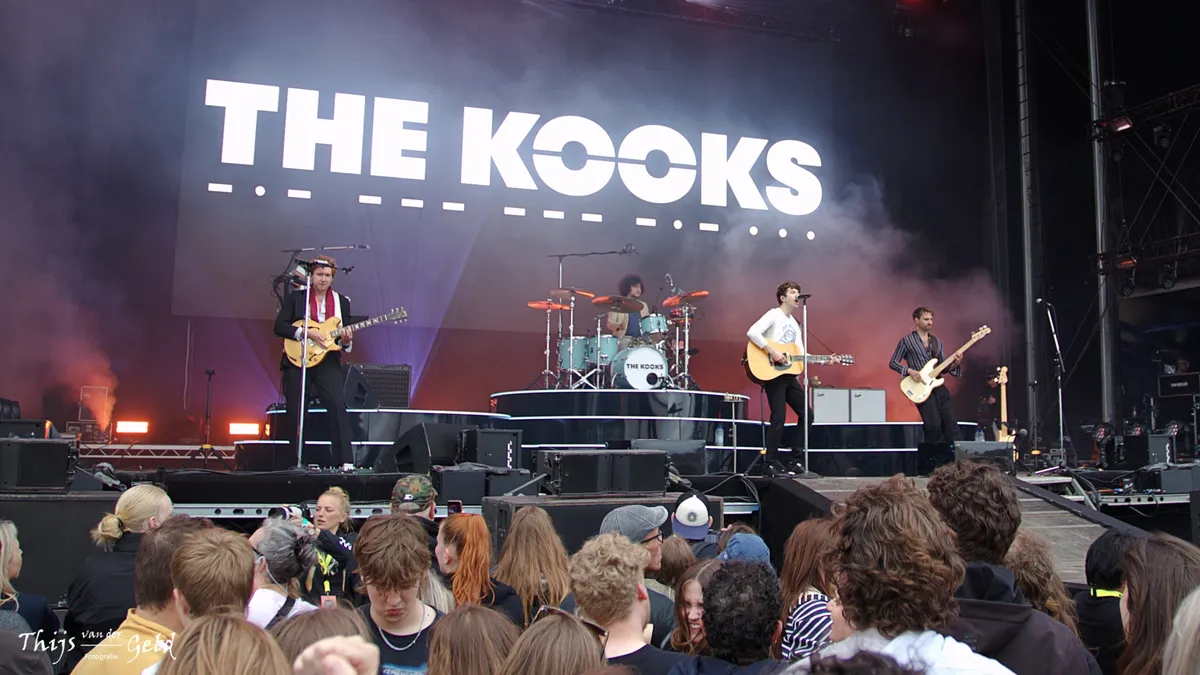 Op de Main is het inmiddels tijd voor de eerste headliner: The Kooks staan op het punt te beginnen. De hitmachine uit Brighton is na 20 jaar inmiddels een begrip in de brit- en indierock. Voor het podium staat een kluitje fans met T-shirts van het album Inside in / Inside out.