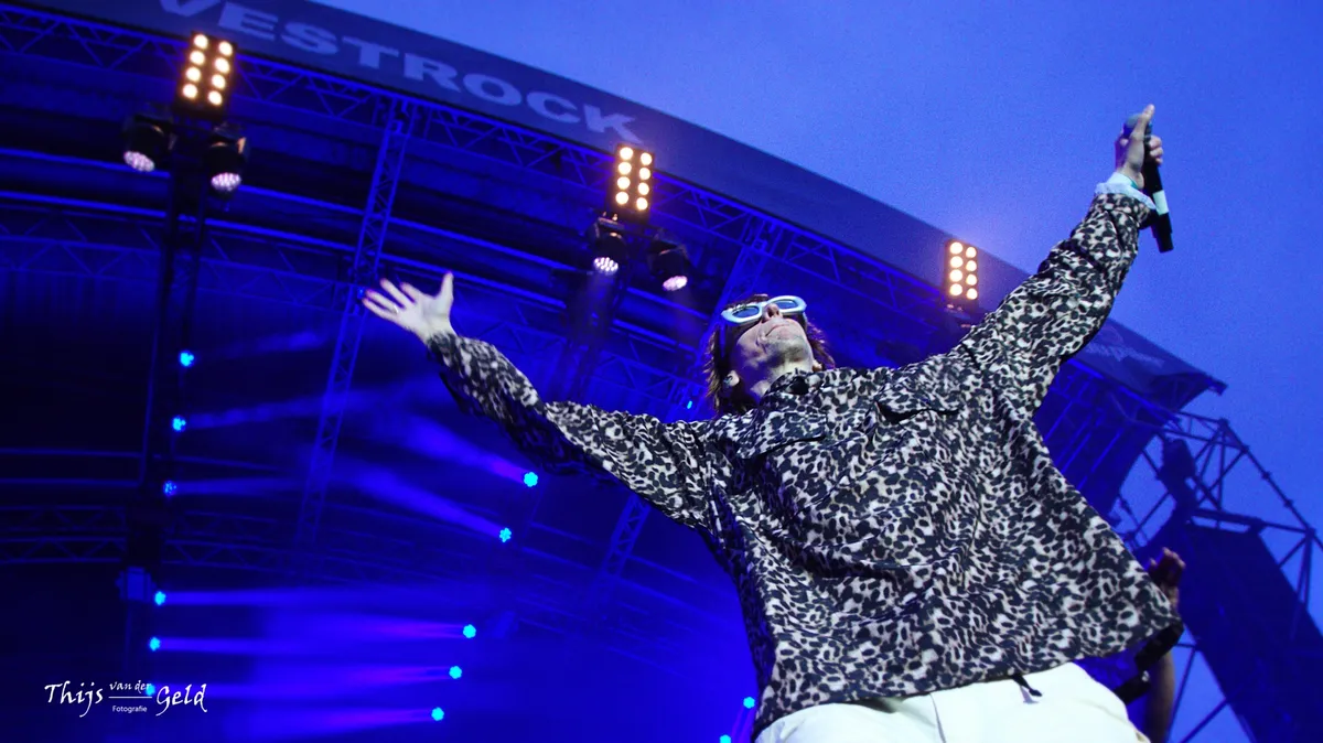 Douwe Bob begint iets later, maar zodra hij het podium betreedt breekt de zon eindelijk echt door: het resulteerde in een lekkere festival set met meer zonnebril wissels dan gitaarsolo’s. Hij was zijn zonnebril vergeten en leende ieder nummer een nieuwe zonnebril uit het publiek. De zon was echter niet voor lange duur, tegen het eind van de set maakt Vestrock zich klaar voor dé stortbui van het festival.