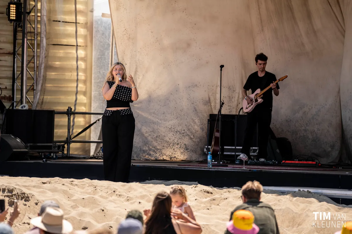 Even later betreed ook Bente het podium om zich bij de band te voegen. Gekleed in een wit ‘I love CATS’-shirt, maar met de T afgeplakt spelen ze samen hun nieuwe single ‘Hoe hou ik dit vast’. Ook de vocalen van Geike in Zoutelande worden door Bente overgenomen.