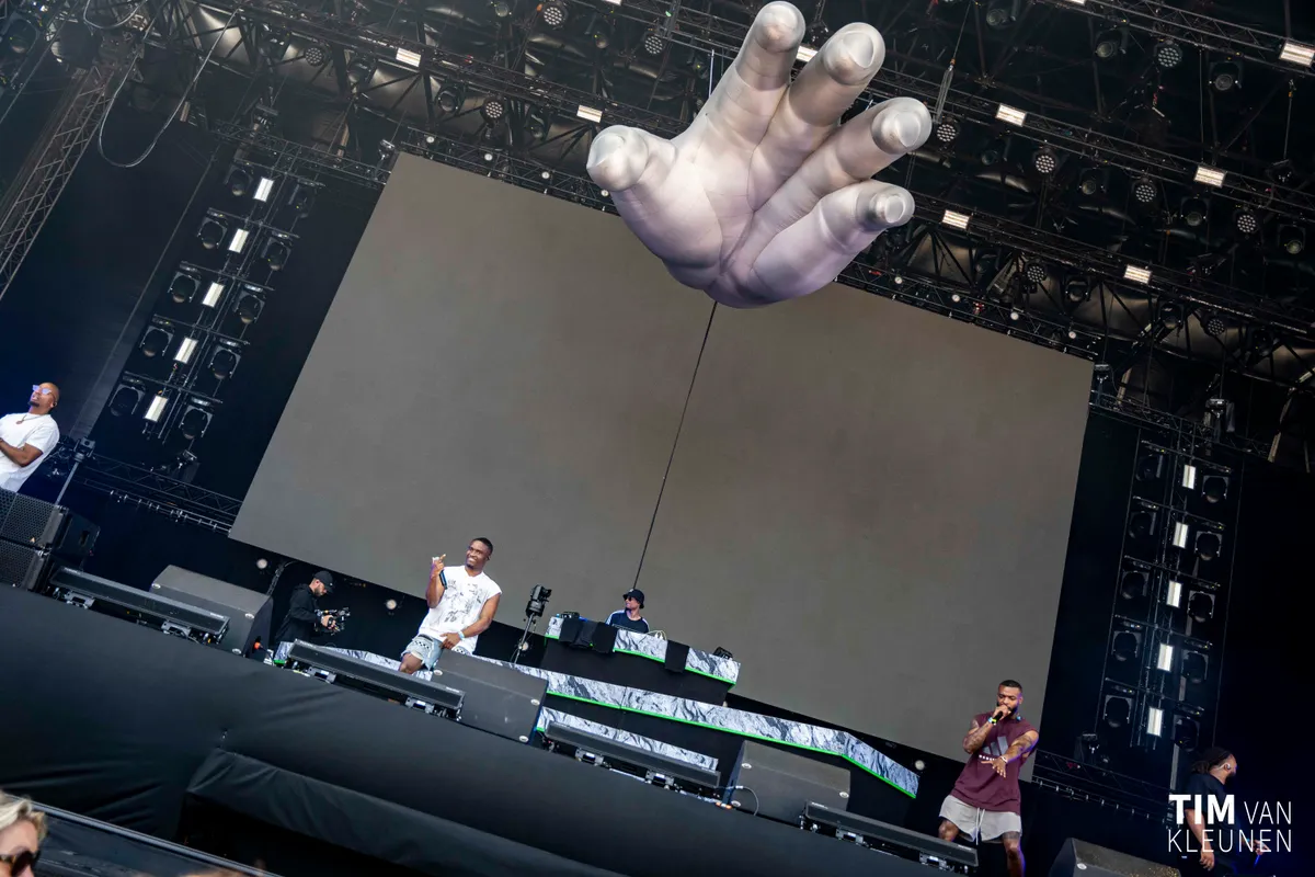Op het Zeeland-podium trapt Broederliefde het podium af. Vergezeld door een enorme hand als decorstuk doet de vriendengroep uit Spangen, Rotterdam waar ze goed in zijn: het bouwen van een feestje, en het slopen van het fictieve dak.