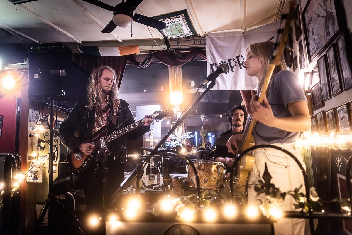 In Café O’Ceallaigh speelt de instrumentale band Cocobolo. Zelf beschrijven ze hun geluid als en mix van old-school funk, psychedelische rock en surf-gitaren. En dat is precies wat het is. De toegevoegde echo aan het geluid van gitarist Erik Brandt zorgt voor een psychedelische ervaring, maar tegelijkertijd wordt hierdoor ook het gevoel en geluid van surf-gitaren neergezet. Wat de band verder funky maakt zijn de heerlijke speelse baslijnen van bassiste Hilde Luytjes. Voeg hier nog het strakke drumspel van drummer Ties Voskamp aan toe en je hebt een heerlijk instrumentaal optreden met veel variatie en swing.