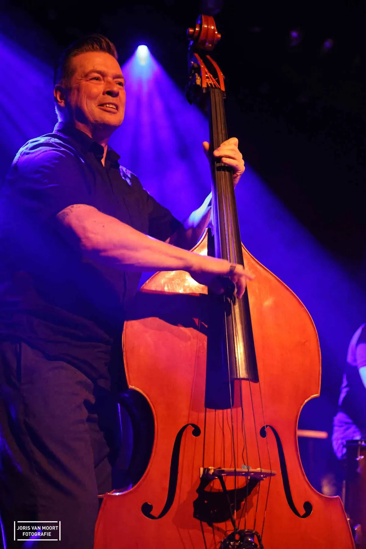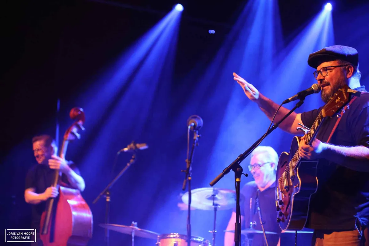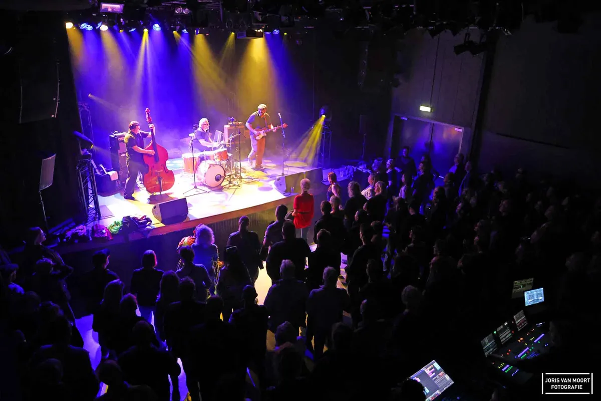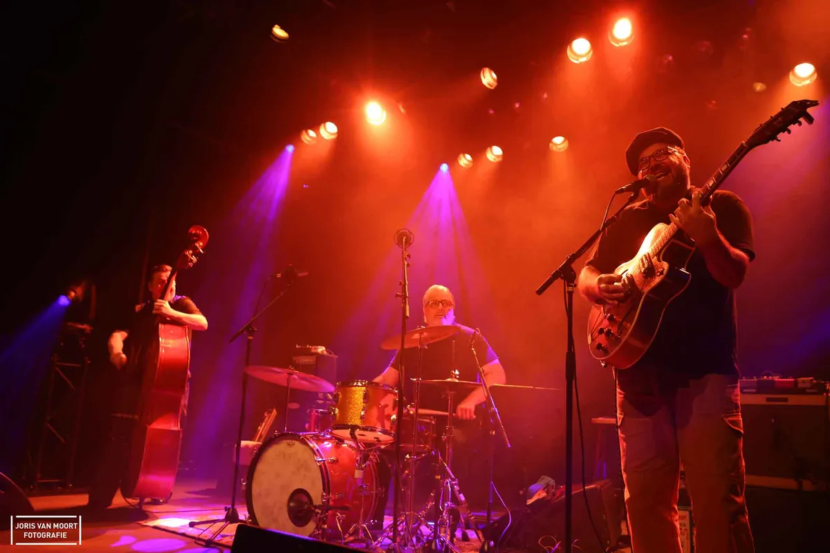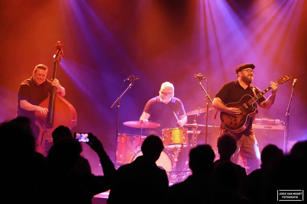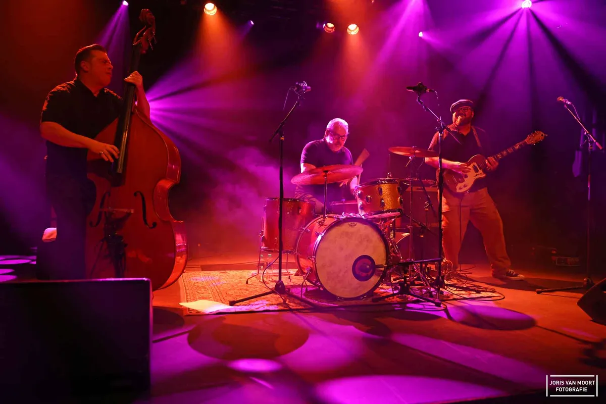Terug naar de muziek. Bluesrock gecombineerd met rock-'n-roll en rockabilly; dat slaat wel aan in 't Beest. Een trio wat bestaat uit drummer Franky Gomez, bassist Jack O Roonie op de upright bas en zanger/gitarist/mondharmonicanist Wouter Celis. De zaal loopt inmiddels vol en het publiek doet aardig mee.