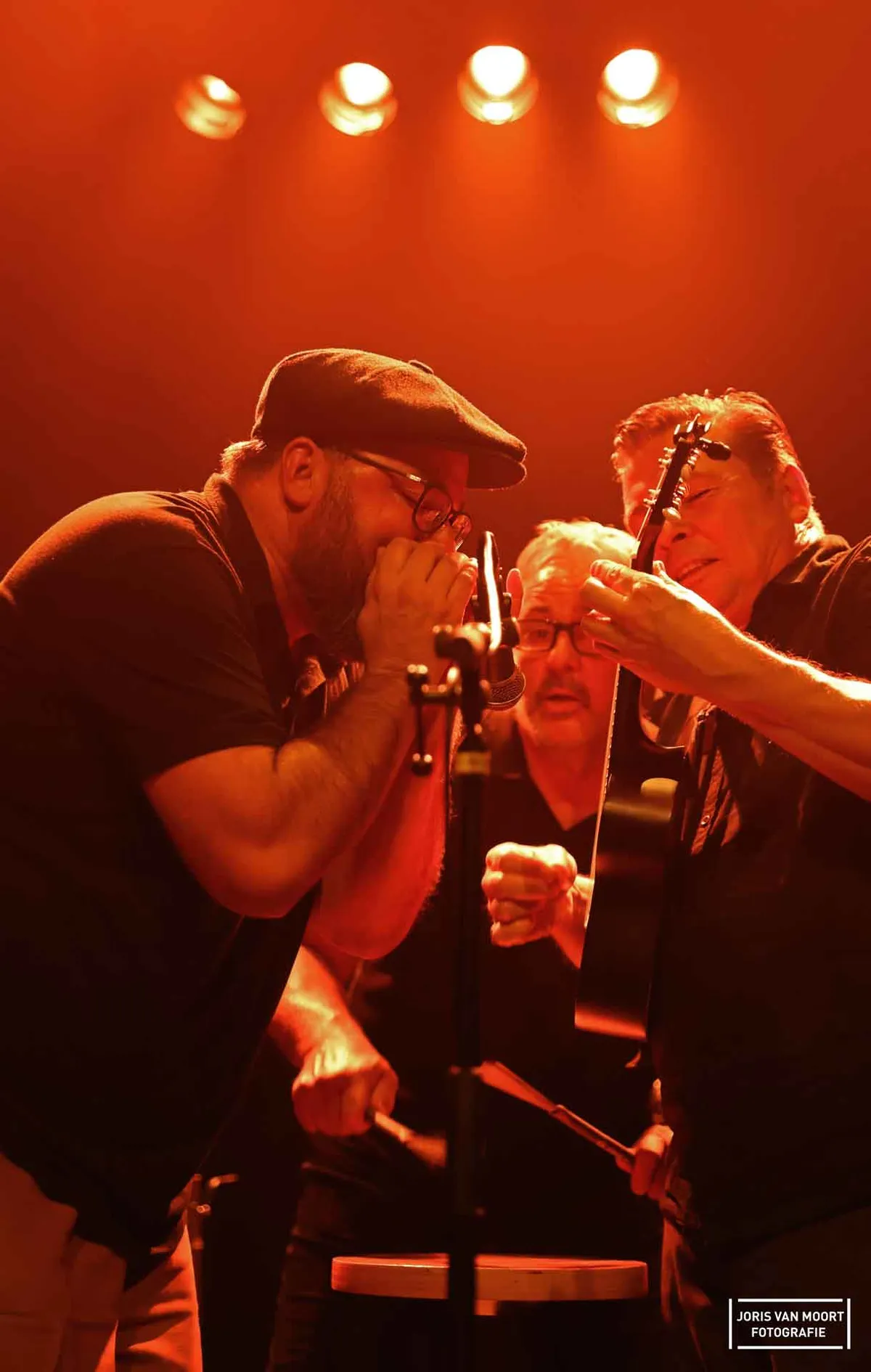 Doghouse Sam and His Magnatones haalt alltes uit hun hoed om het publiek op te warmen voor wat er verder nog gaat komen deze vrijdagavond. Een opvallend moment is als het trio rond éen microfoon gaan staan. "Dit hebben we niet geoefend tijdens de soundcheck, maar dit is iets bijzonders". Het geroezemoes (the Dutch disease) ebt weg, als het trio start rondom de microfoon. Meerstemmig, gitaar en mondharmonica maken het tot een geheel en betoveren hiermee een lach op het gezicht van meerdere bezoekers. Wat tof en doe dit vooral meer! Daarna nog even vol gas verder met hun bluesrock, want dat klinkt dan ook meer dan prima. In Podium 't Beest is de avond na anderhalfuur dan afgelopen, maar de avond is nog jong voor menig bezoekers van de Bluesroute.