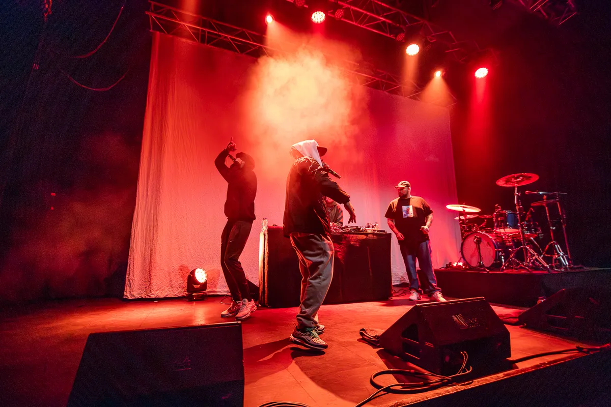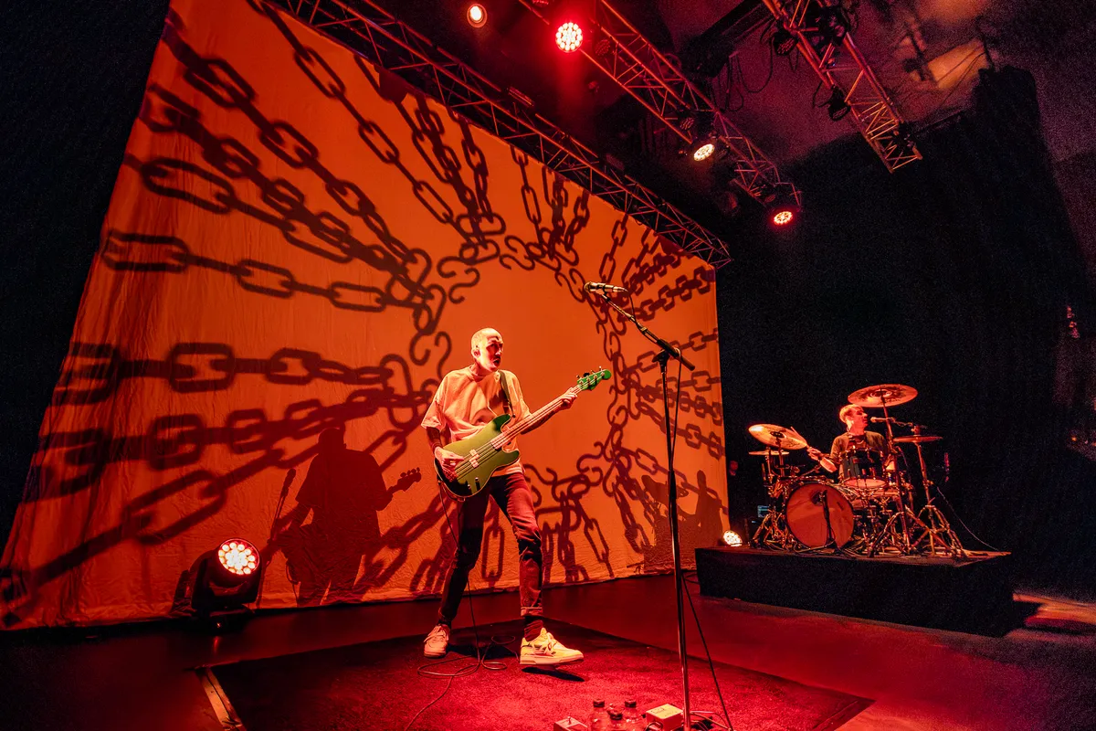 Hoewel, echt heavy metal kunnen we Doodseskader natuurlijk niet noemen, zoals direct opvalt in het begin van de set bij ‘Pastel Prison’. Het nummer begint groovy, maar halverwege is er een ijzige schreeuw die ons verder de diepte van het nummer in sleept. De band zet vanavond een sterke muur van geluid neer en dat met slechts twee man: Tim de Gieter, die we o.a. ook kennen als de bassist van Amenra, en Sigfried Burroughs, o.a. van Kapitan Korsakov. De muziek is keihard, intens en soms zelfs emotioneel. Dat ligt deels aan de complexiteit van de muziek, die je meeneemt in een achtbaan van geluid en emotie, maar zeker ook aan de teksten. De lyrics gaan vaak diep: ze zijn openhartig, eerlijk en introspectief. Zoals in ‘It’s Not An Addiction If You Don’t Feel Like Quitting’: “This is a lifeline? – I’m Drowning / This a goldmine? – I’m starving / This a future? – No thank you / This a fuck up I’ve got used to”. Zoals de band het zelf verwoordt: hun muziek dient als een spiegel voor het leven: soms bruut, soms fragiel, soms geeft het energie, maar het is altijd onverwacht.