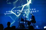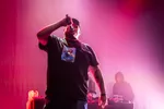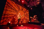 De snijdende en brute vocalen van zowel De Gieter als Burroughs, gecombineerd met intense grunts maken vanavond indruk. De Gieter ijsbeert regelmatig over het podium en staart soms dreigend de zaal in. Opvallend is vanavond de mooie uitvoering van ‘Plastic Skin/Warm Flesh’, van de soundtrack van de game Tides of Tomorrow, een spel waarin een dodelijke plastificering dreigt alle levende wezens te doden en het is aan jou als speler van de game om dit te overwinnen. Een nummer met een duidelijke boodschap, dat aantoont dat Doodseskader niet alleen uitblinkt in energieke basdreunen, maar ook een intense lading neerzet in rustigere nummers. Die intensiteit is ook terug te zien in de visuals: we zien steeds levendige, kleurrijke, haast psychedelische projecties, altijd passend bij de sfeer van het nummer, met flarden van songteksten.