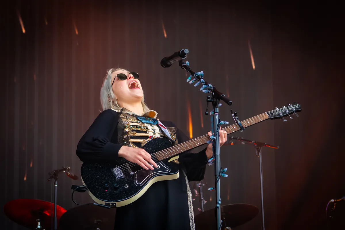 Van de introtape van Disturbed's 'Down With The Sickness' tot het black metal-logo op de bassdrum; Phoebe Bridgers en haar in skelet-outfits gehulde backingband zetten hun publiek graag op het verkeerde been. De Californische singer-songwriter heeft haar melancholische emo-folk met de rijk geproduceerde tweede plaat Punisher uit 2020 in rap tempo door weten te stoten naar de grote podia. Wie kan zich nog herinneren hoe ze in 2018 voor amper 200 mensen stond te spelen in het Nijmeegse Merleyn - met dezelfde kerstlampjes als vandaag om de microfoon gewikkeld? Opener 'Motion Sickness' wordt nu al als een klassieker meegezongen, maar het zijn met name ook de tragere nummers als 'Chinese Satellite' en het titelnummer van de laatste plaat die indrukwekkend worden vertaald naar het grote Hotot-stage. Inclusief fraaie visuals op de achtergrond.