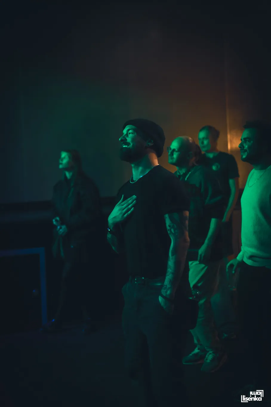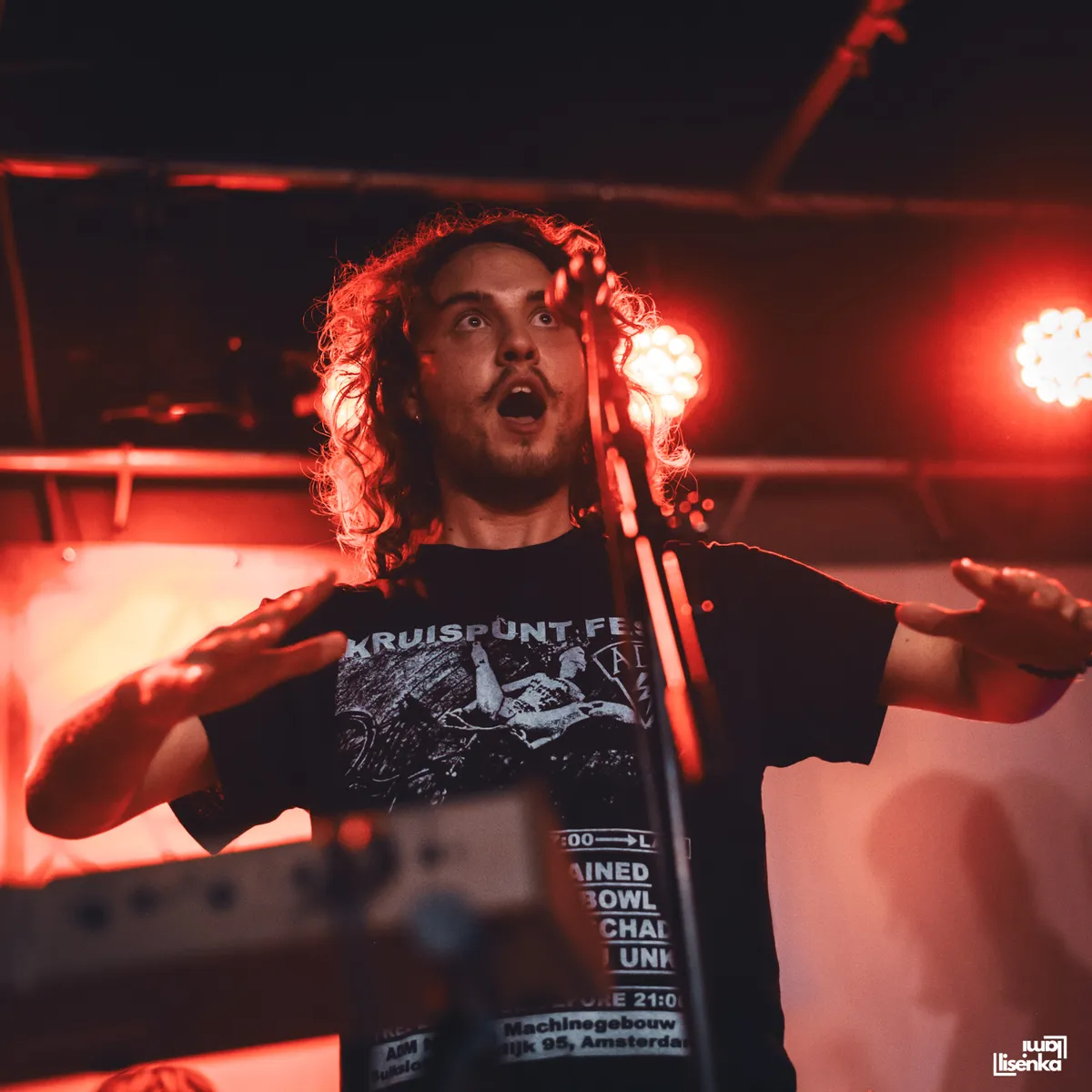 De frontman/toetsenist Vos blijkt een showman. Hij is erg actief en danst vaak over het podium. Hij tilt er zijn benen zo hoog bij op tot ze bijna haaks op zijn lijf staan en legt vaak zijn handen in extase op zijn hoofd. De gitaristen Jorah en Pascal dragen witte en zwarte hemden, de bassist een rok en lange laarzen. De gitarist in het wit laat de Jimi in zich los en zakt door zijn knieën, de gitaarhals als een loop op ons richtend. Vier fans vooraan dansen hartstochtelijk mee en kennen alle teksten.