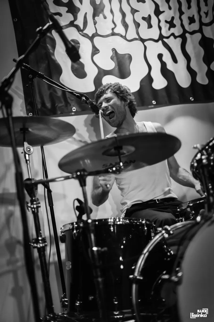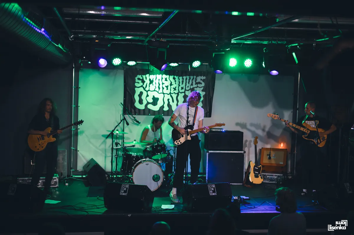 Zodra het viertal van Ringo Starrbucks begint te spelen, hoor je het: de stem van frontman Daniël. Pure post-punk, regelmatig bijna sprekend, dan schreeuwend. Geen zweem van melancholische new wave te bekennen. Hun tempo is dan weer dat van punk, je ruikt bijna de verschroeide snaren. De eerste gitaarwissel van de avond vindt al tussen het eerste en tweede nummer plaats.Hun onderwerpen zijn verschillend en gaan over een hondenkooi, "je niet kunnen concentreren" (‘ADHD’) en incels. Hun banner is al even tegendraads: de bandnaam hangt op zijn kop.